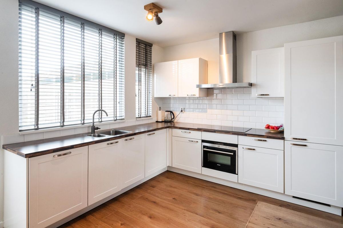 Open keuken in een ruime hoekopstelling met een dubbele spoelbak, inductiekookplaat, vaatwasser (2024), afzuigkap, koel-vriescombinatie (2022) en een combi-oven (Siemens). Deur naar de zonnige achtertuin, gelegen op het Zuid- Oosten, met een elektrisch bedienbaar zonnescherm, een poort via de zijkant en een stenen berging.