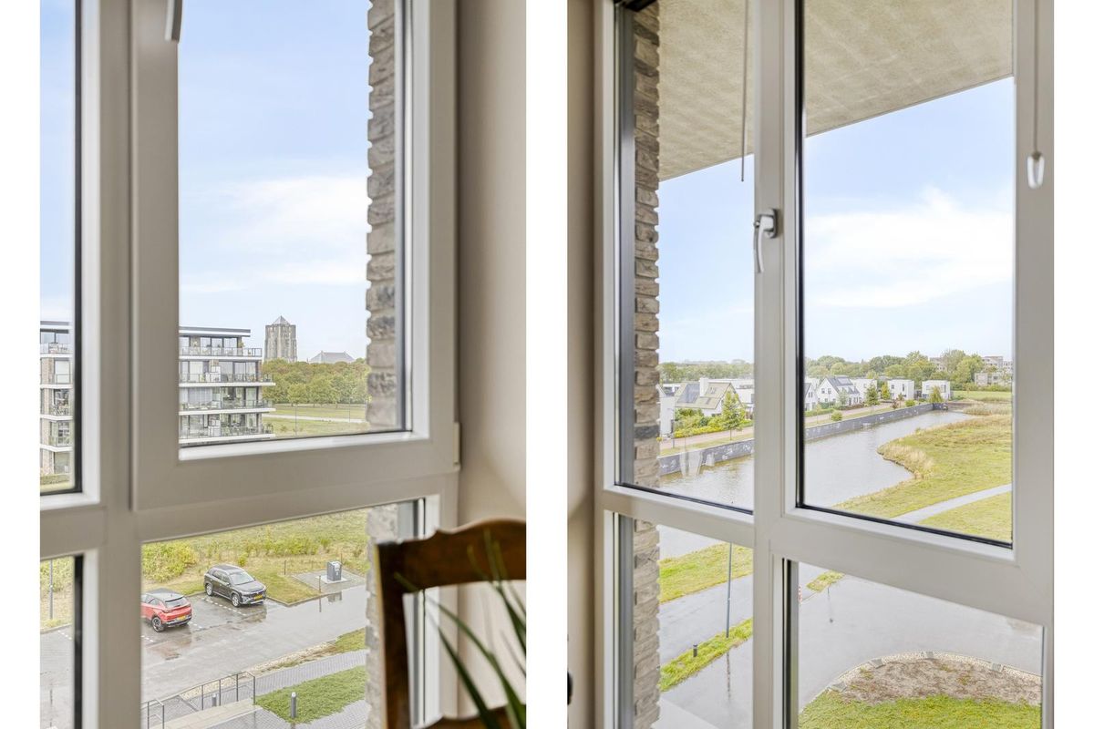 Het appartement biedt aan drie zijden een werkelijk uniek uitzicht, waaronder op de karakteristieke ‘Dikke Toren’. Dankzij de dubbele balkons kunt u de hele dag door genieten van de zon of juist kiezen voor de schaduw, precies zoals u wilt.