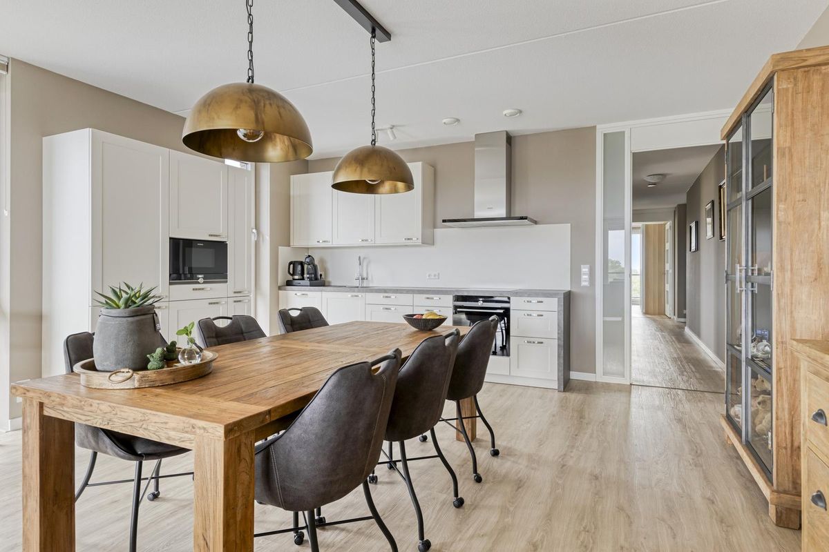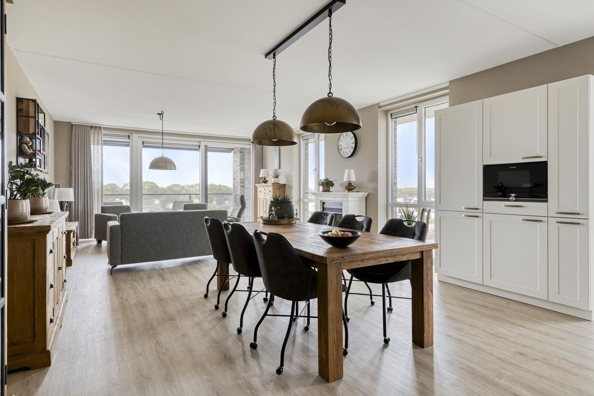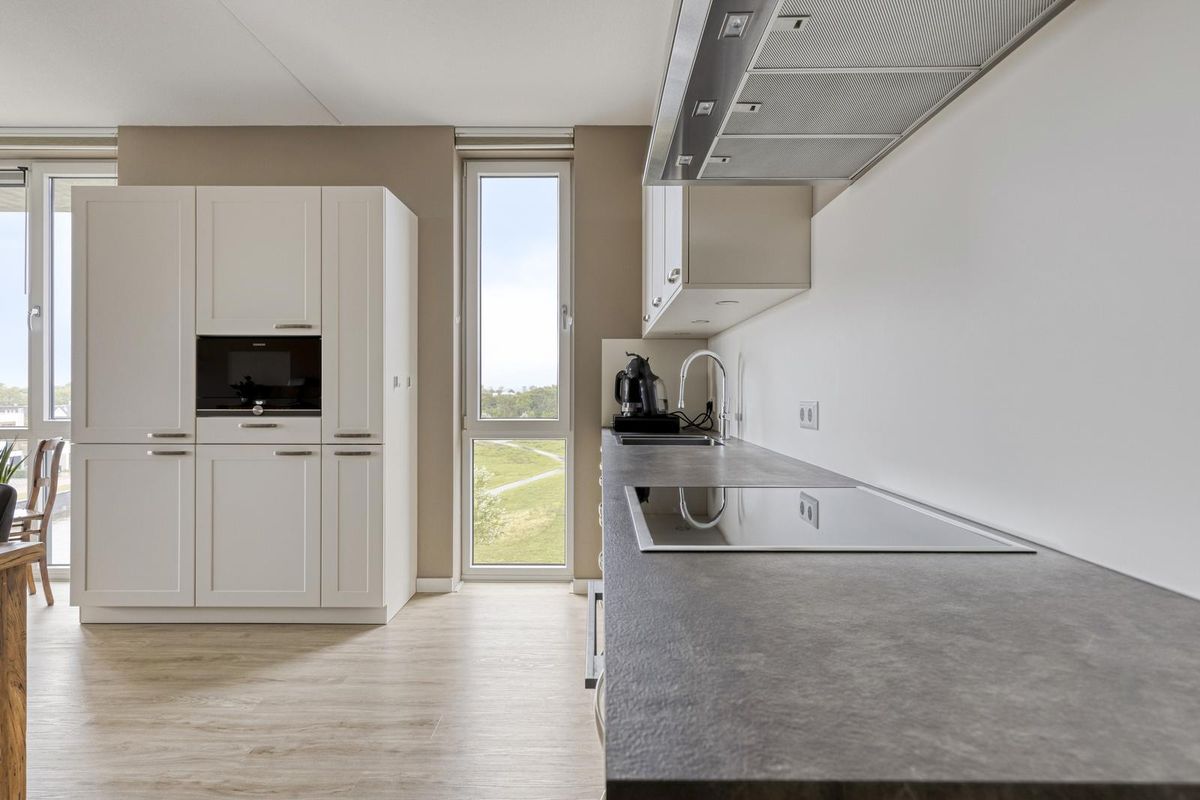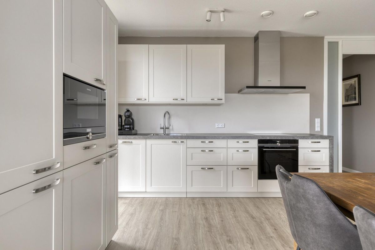 De woonkamer en keuken bevinden zich aan de westzijde en zijn royaal opgezet. Via de grote schuifpui heeft u toegang tot het tweede balkon op het westen. Ook hier zijn screens en een uitvalscherm aanwezig. De open keuken is luxe uitgevoerd en voorzien van Siemens inbouwapparatuur, waaronder een inductiekookplaat, afzuigkap met plasmade-filter, oven, magnetron, vaatwasser en hotfill-boiler. De leefruimtes zijn voorzien van een nette pvc-vloer en horren in ramen en schuifpuien zijn overal aanwezig.