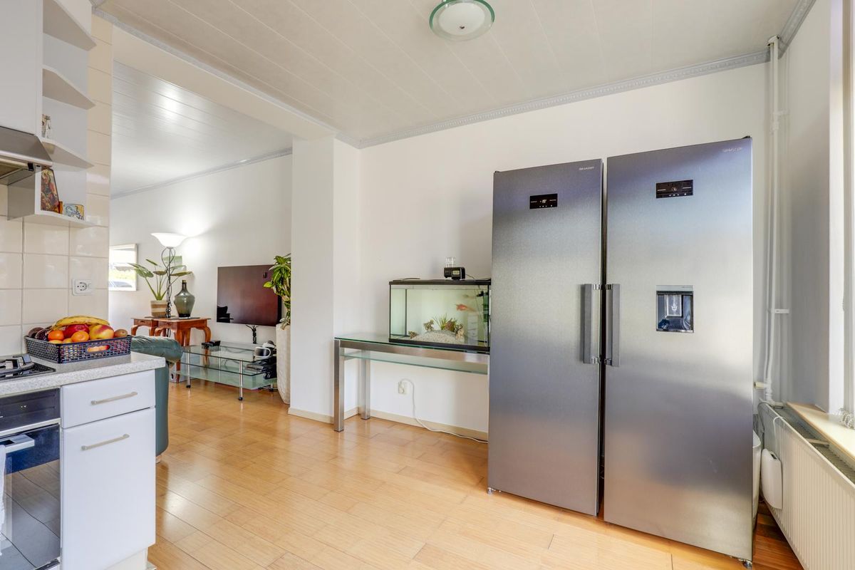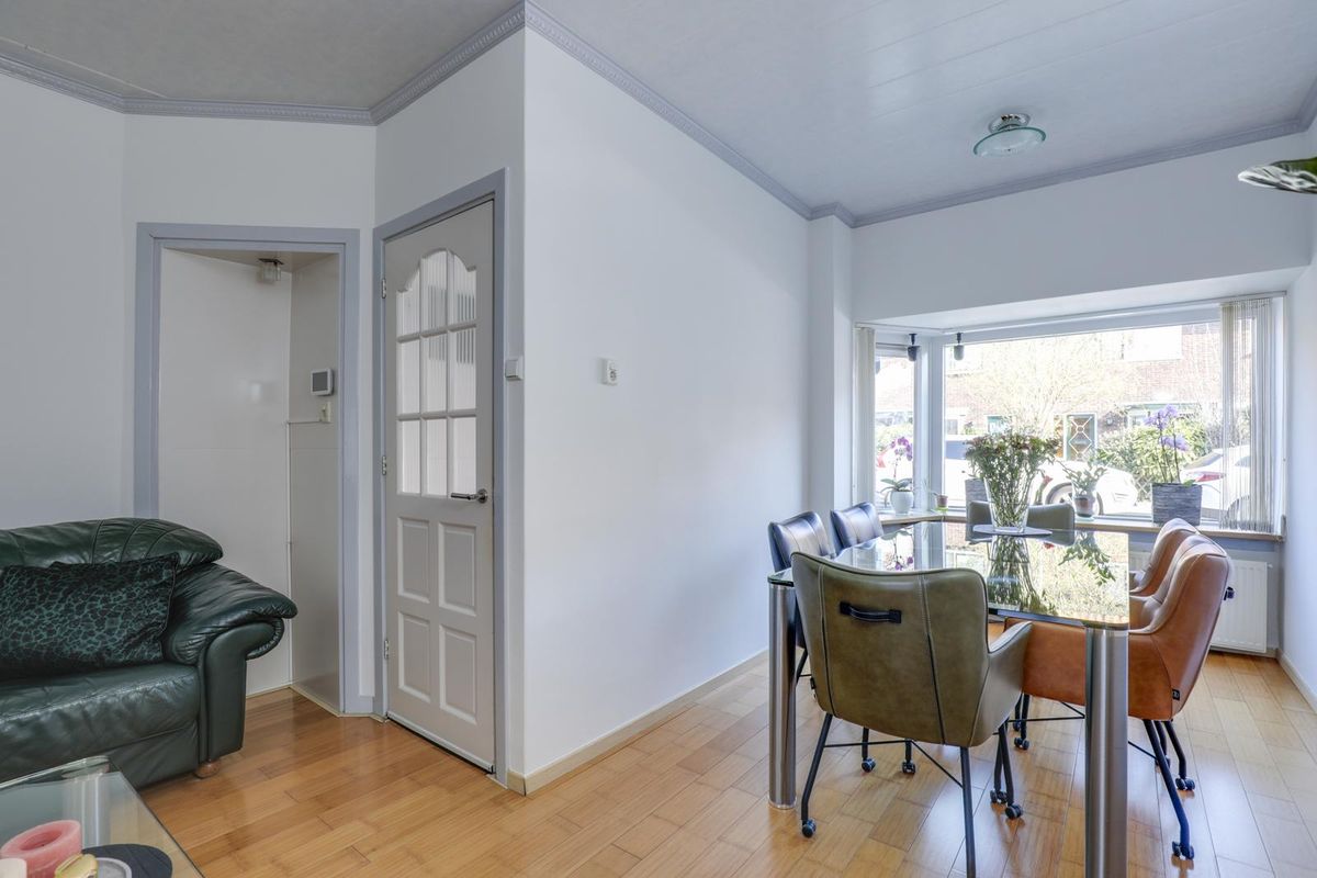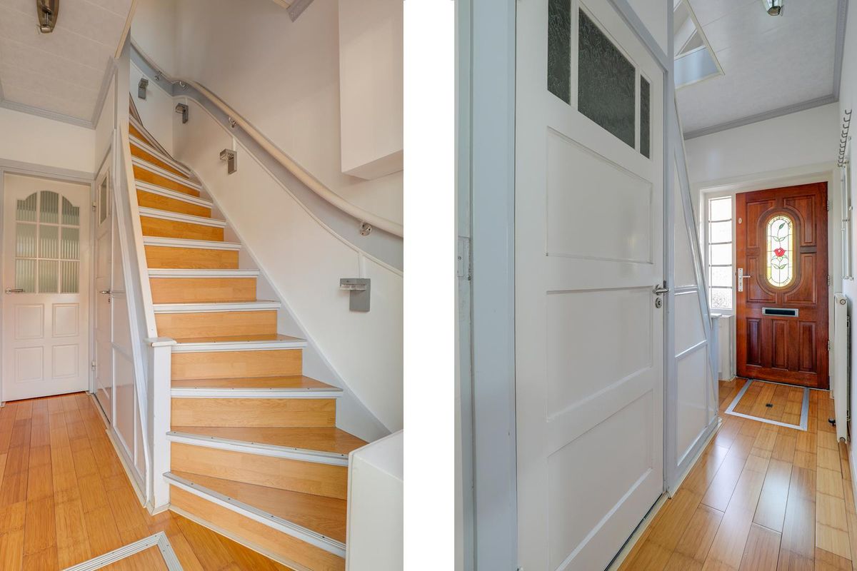 Entree, hal met meterkast en modern toilet met fontein. De lichte doorzon woonkamer heeft aan de voorzijde een karakteristieke erker en loopt door naar de royale leef keuken. Deze is voorzien van diverse inbouwapparatuur en openslaande deuren naar de zonnige tuin.