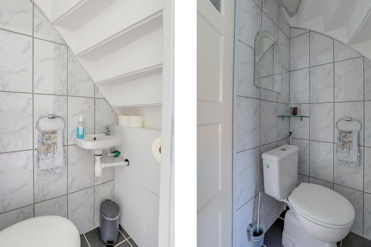 Deze goed onderhouden jaren ’30 woning valt op door de erker aan de voorzijde en de grote open leef keuken aan de achterzijde, met openslaande deuren naar de tuin. De achtertuin ligt op het zuiden, is volledig betegeld en voorzien van strakke schuttingen en sfeerverlichting. Achterin de tuin vind je een royale berging over de volle breedte. Ook het dakterras is een groot pluspunt: hier geniet je van de rust en het uitzicht over de binnentuinen van de Koppestokstraat.