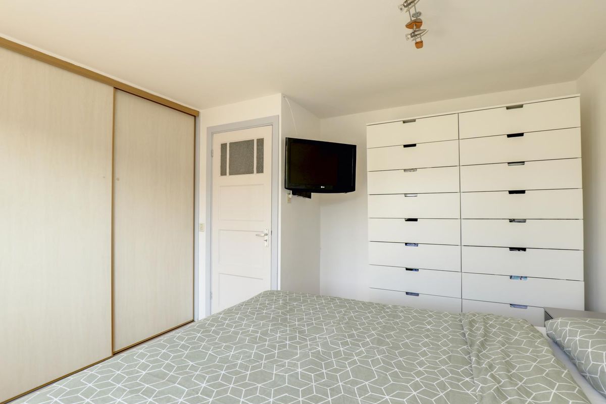 Overloop met c.v.-kast en trapopgang. Aan de achterzijde bevindt zich de ruime hoofdslaapkamer met kamerbrede kastenwand en toegang tot het dakterras. De badkamer beschikt over een douche, wastafel, tweede toilet en aansluiting voor de wasmachine.