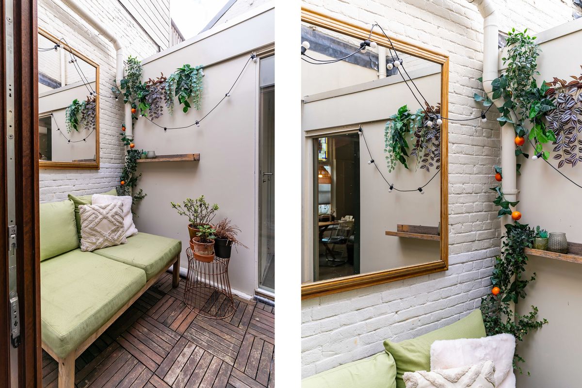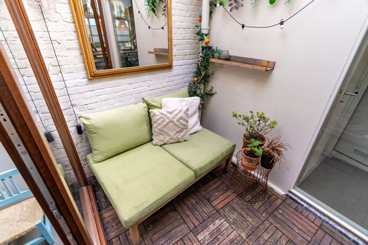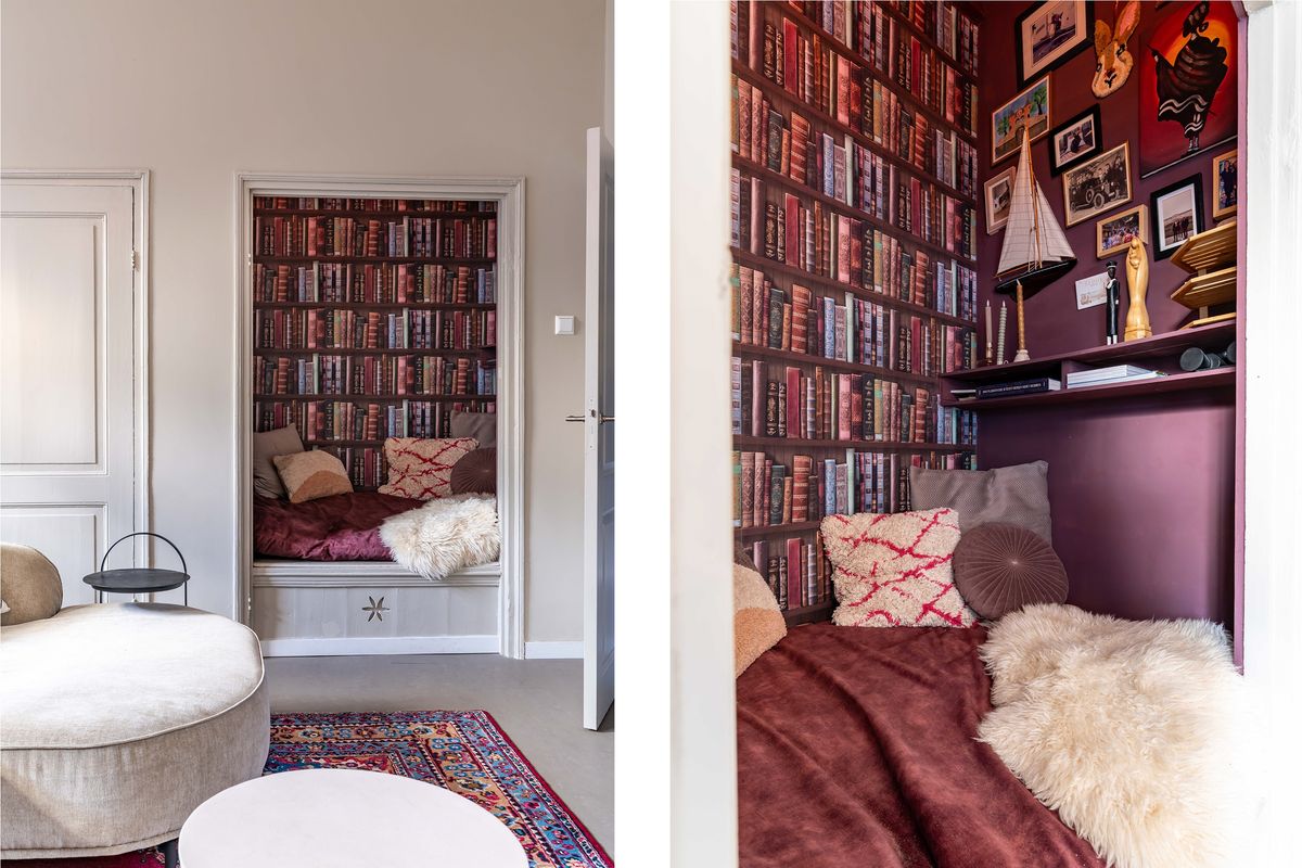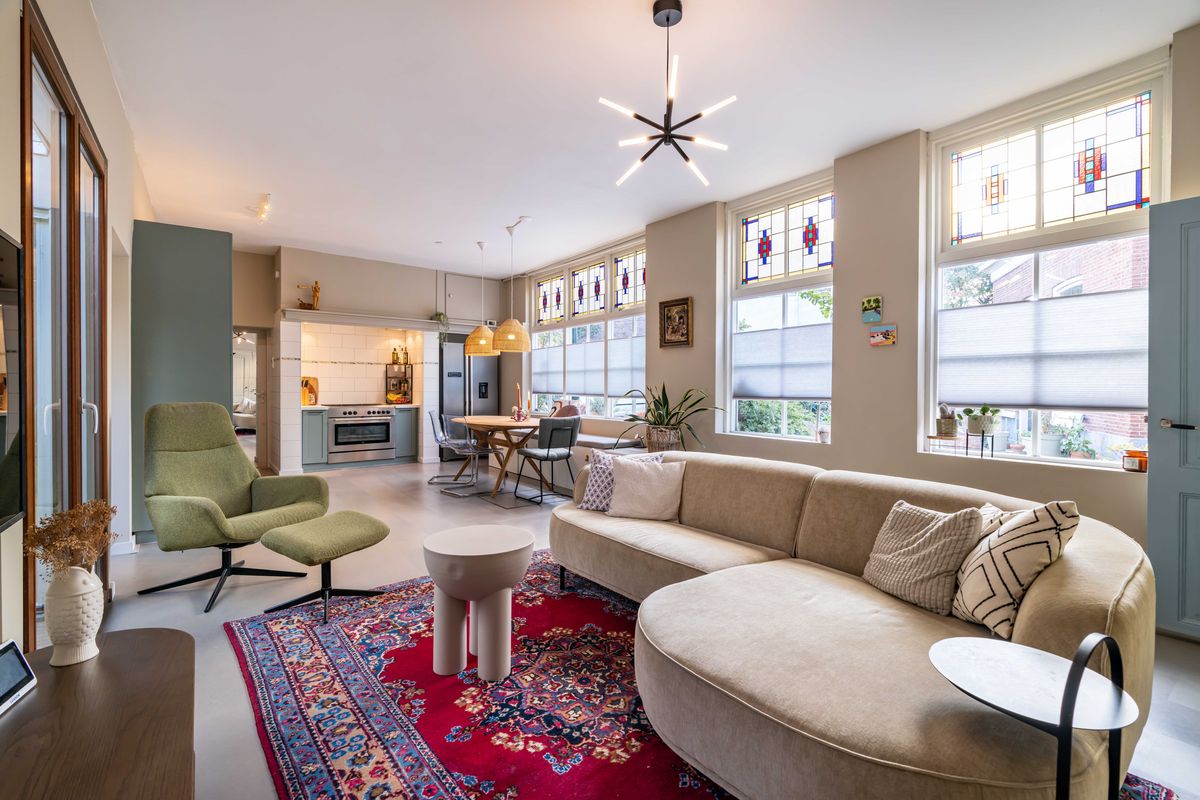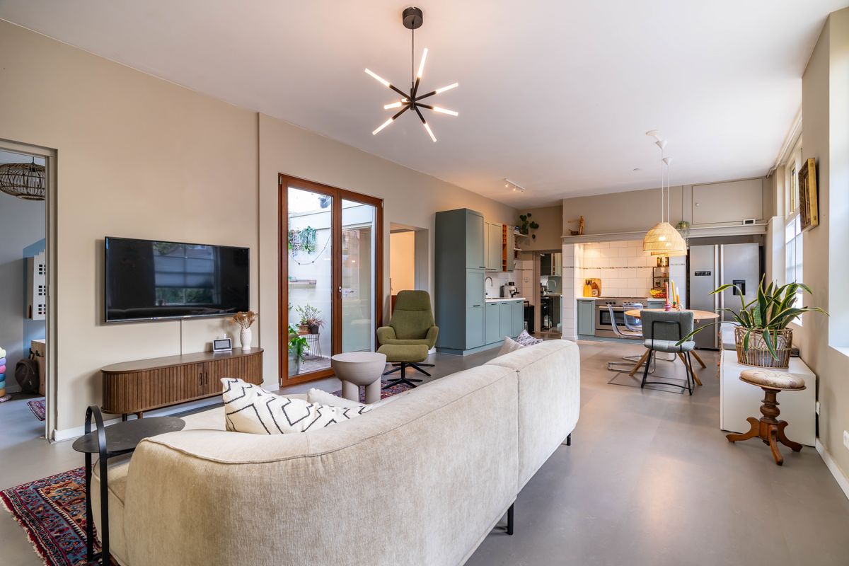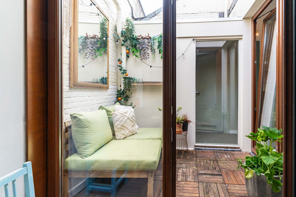 Heerlijke lichte woonkamer met vloerverwarming en een duurzame marmoleum vloer, charmante uitkijk op het pleintje en de muurschildering aan de overkant. Originele bedstede onder de trapopgang - typisch voor Scheveningen - ideaal als chillplek. In de ruimte onder de bedstede bevindt zich nog een kelder. Er is een aparte kamer die nu in gebruik is als studeer,-/speelkamer. Zowel vanuit de woonkamer als de studeerkamer toegang tot de patio waar je heerlijk een kopje koffie drinkt met een goed boek.