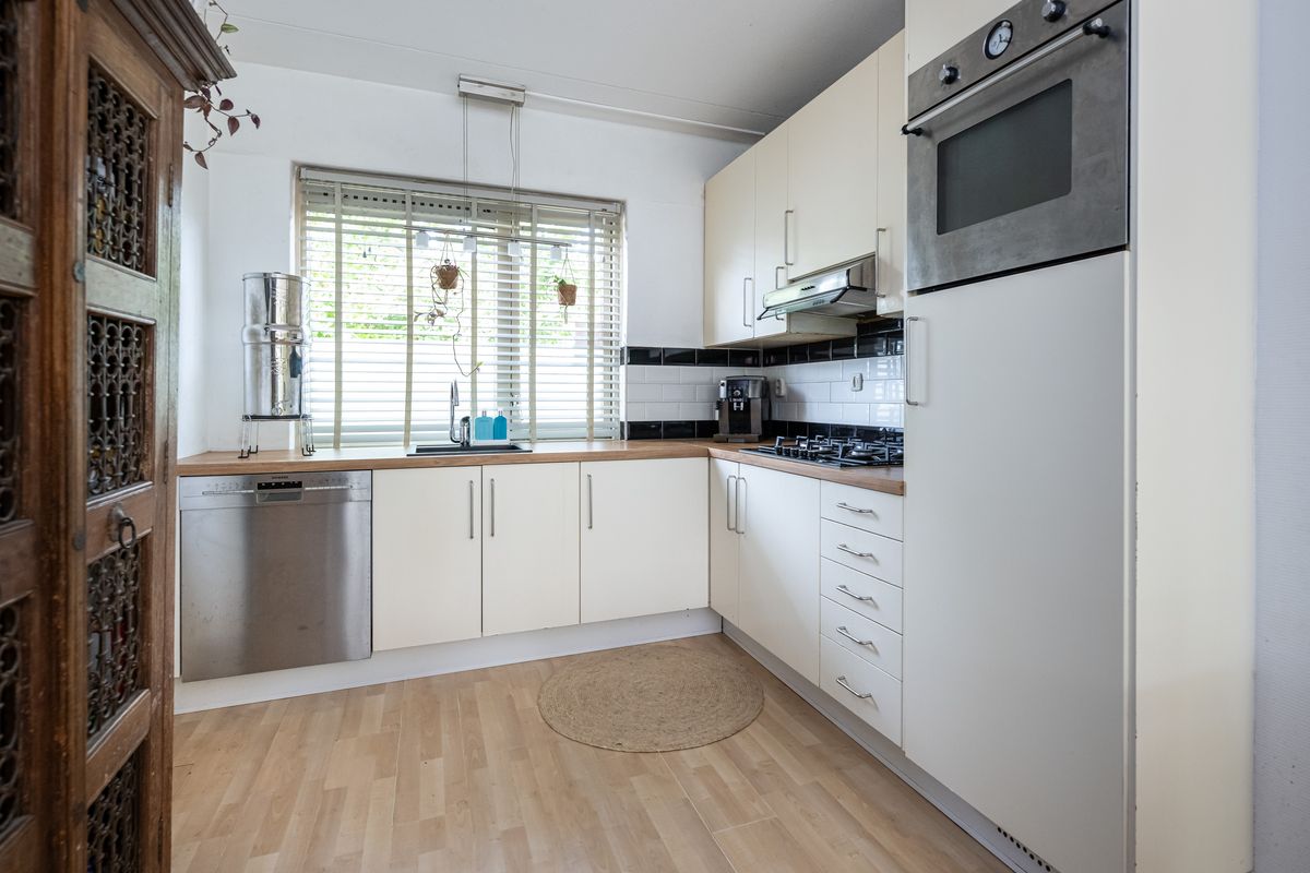 De keuken bevindt zich aan de voorzijde van de woning en is praktisch ingericht met voldoende kastruimte en werkbladoppervlakte. Hier kunt u met gemak een heerlijke maaltijd bereiden terwijl u zicht heeft op de rustige straat.