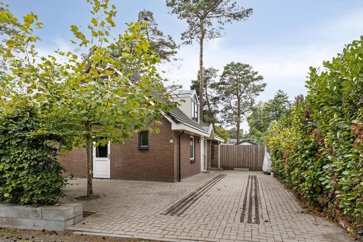 De tuin die deze woning omringt is een ware oase van rust en groen, een plek waar het buitenleven naadloos overgaat in de natuurlijke omgeving. Het royale perceel biedt volop privacy, omgeven door volgroeide bomen en weelderige beplanting die meebewegen met de seizoenen. Zodra je naar buiten stapt, hoor je het zachte ruisen van de wind door de dennen en het vrolijke getjilp van vogels die hun plek hebben gevonden in het groen. Met wat geluk zie je zelfs een eekhoorn nieuwsgierig van boom tot boom springen, kleine momenten die elke dag bijzonder maken. De verschillende terrassen rondom de woning zijn met zorg aangelegd en bieden voor ieder moment van de dag een perfecte plek. Geniet in de ochtend van een rustig ontbijt in de opkomende zon, terwijl de dauw nog op het gras ligt. Zoek in de middag de verkoelende schaduw op onder het elegante schaduwdoek, en sluit de dag af met een diner in de avondzon, omringd door het zachte licht dat tussen de bomen door valt. De tuin is ruim genoeg voor meerdere zitplekken, een grote eettafel en speelse hoekjes waar kinderen kunnen ravotten of waar je ongestoord kunt lezen, werken of simpelweg ontspannen. Het geheel ademt ruimte, vrijheid en natuurlijke schoonheid. Een ideale balans tussen comfort en buitenleven.