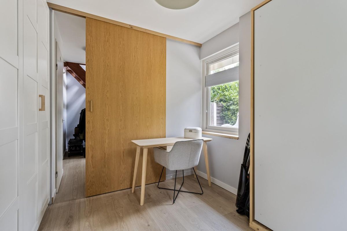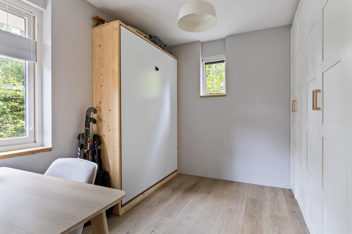 Eerste verdieping: Op de eerste verdieping bevinden zich twee ruime slaapkamers, beide met een serene uitstraling en meer dan genoeg ruimte voor kasten en opbergruimte. De ouder(slaap)kamer is een plaatje op zich: voorzien van een charmant Frans balkon, waar je in de ochtend de deuren kunt openen en de frisse boslucht naar binnen stroomt. Dankzij de twee dakkapellen aan weerszijden van de verdieping geniet je overal van extra lichtinval en ruimtelijkheid.