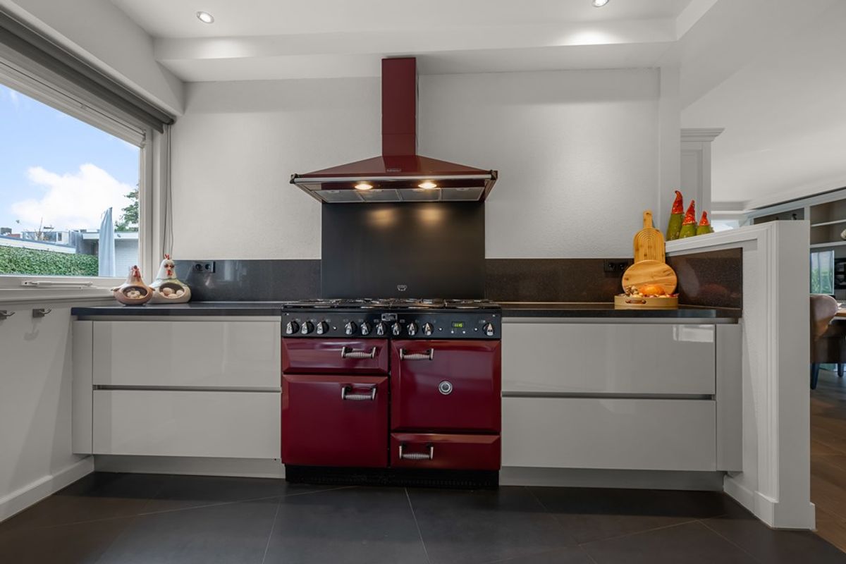 De keuken is compleet uitgevoerd en is voorzien van een koelkast en separate vriezer, combi-magnetron, vaatwasser, ingebouwd koffieapparaat, Quooker én een karakteristiek Falcon fornuis. Hiermee is er alle ruimte en comfort voor kookliefhebbers. Direct naast de keuken bevindt zich de bijkeuken met extra opbergruimte en aansluiting voor wasmachine en droger. Vanuit hier is ook de eerste, inpandige garage toegankelijk — ideaal voor opslag, hobby’s of het parkeren van een auto.