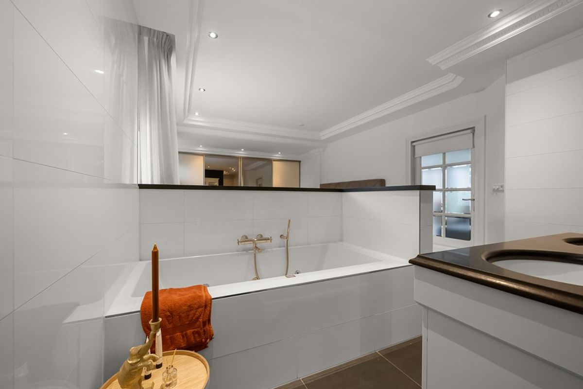 De lichte woonkamer vormt het hart van de woning en is bijzonder ruim van opzet. Door de ronde vorm en brede raampartijen geniet u hier de hele dag van zonlicht en een vrij zicht op de tuin. Dit is een plek waar u heerlijk kunt ontspannen en gasten kunt ontvangen.