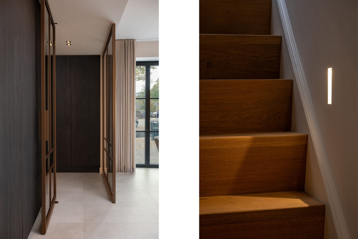 - Spots langs de trap, taatsdeuren door het hele huis