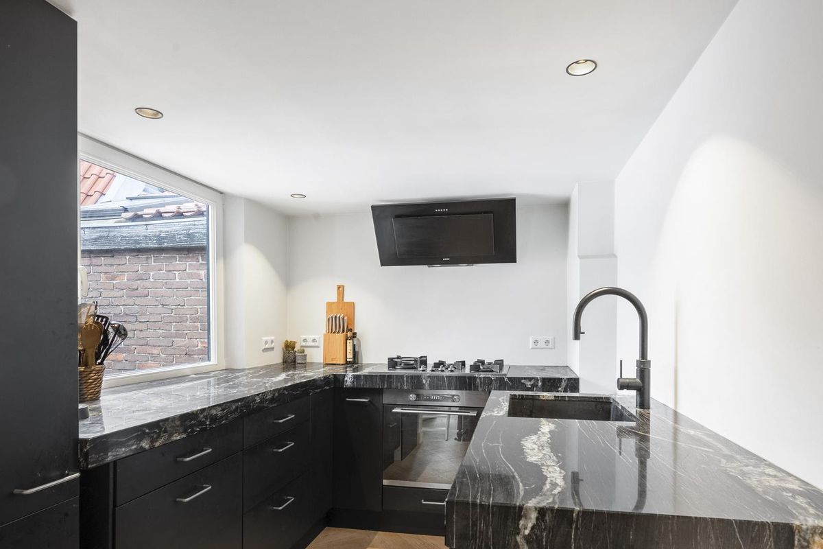 - Keuken is voorzien van een prachtig natuurstenen blad en quooker