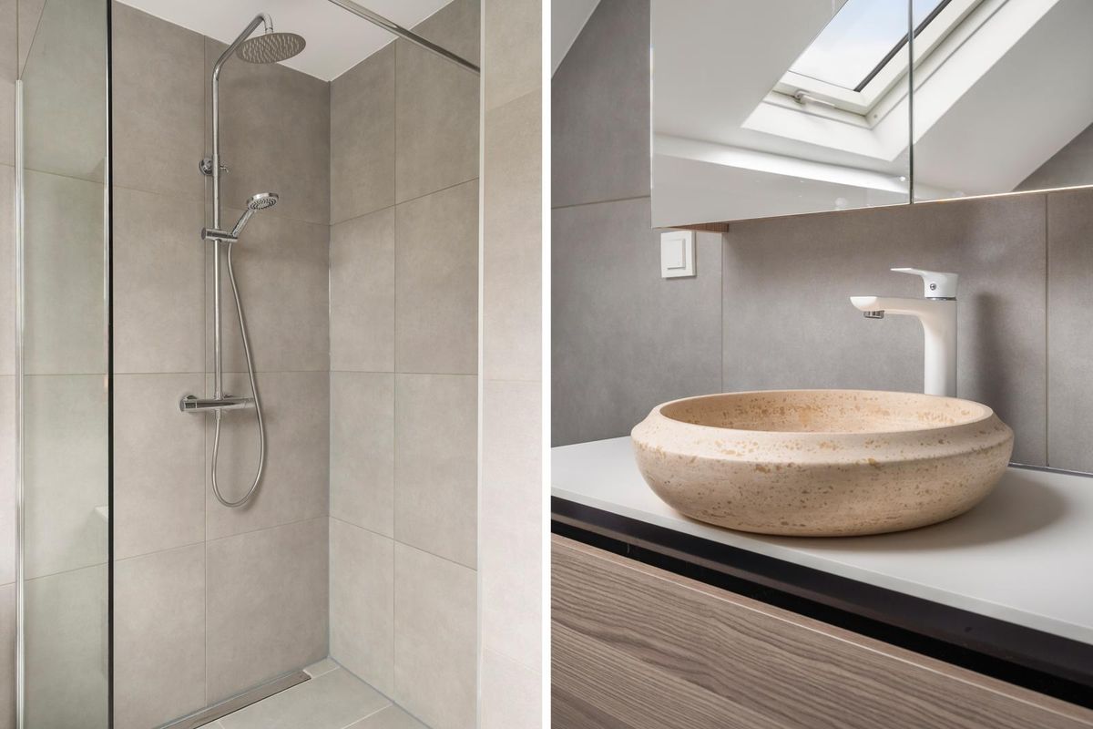 Derde verdieping: overloop, tweede slaapkamer, luxe badkamer met douche en wastafel.