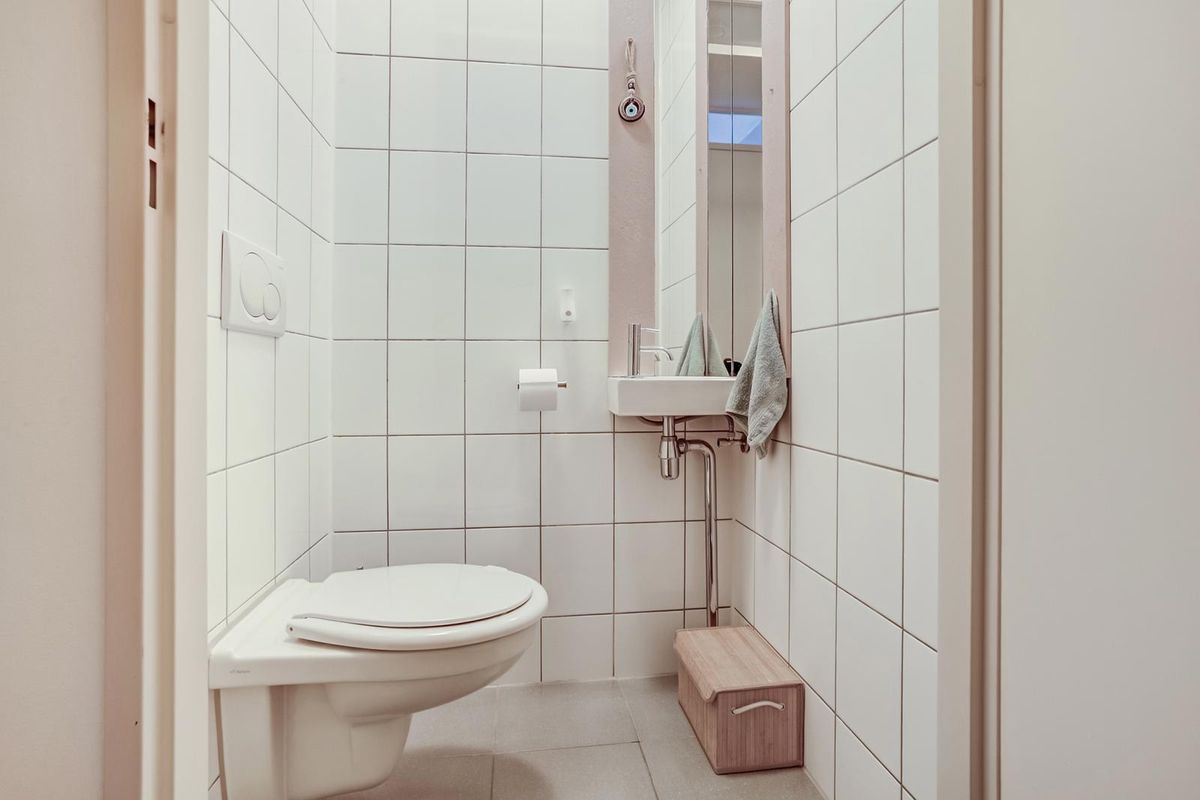 Vanuit de hal heb je toegang tot de slaapkamer, een separaat toilet, een berging met daarin de aansluitingen voor het witgoed en de cv opstelling, en de badkamer.
