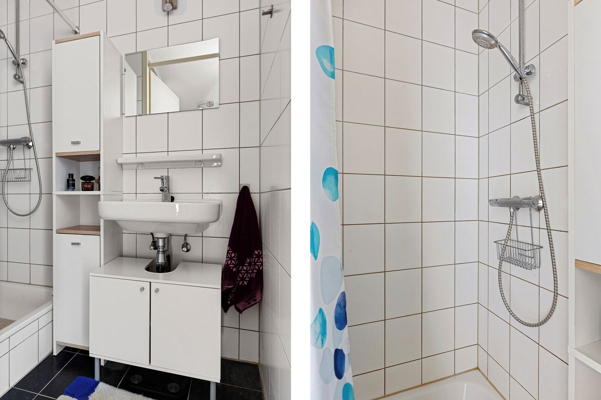 De badkamer is uitgevoerd in tijdloos wit-zwart tegelwerk en beschikt over een douche en een wastafel, zodat je hier nog jarenlang van kunt genieten.