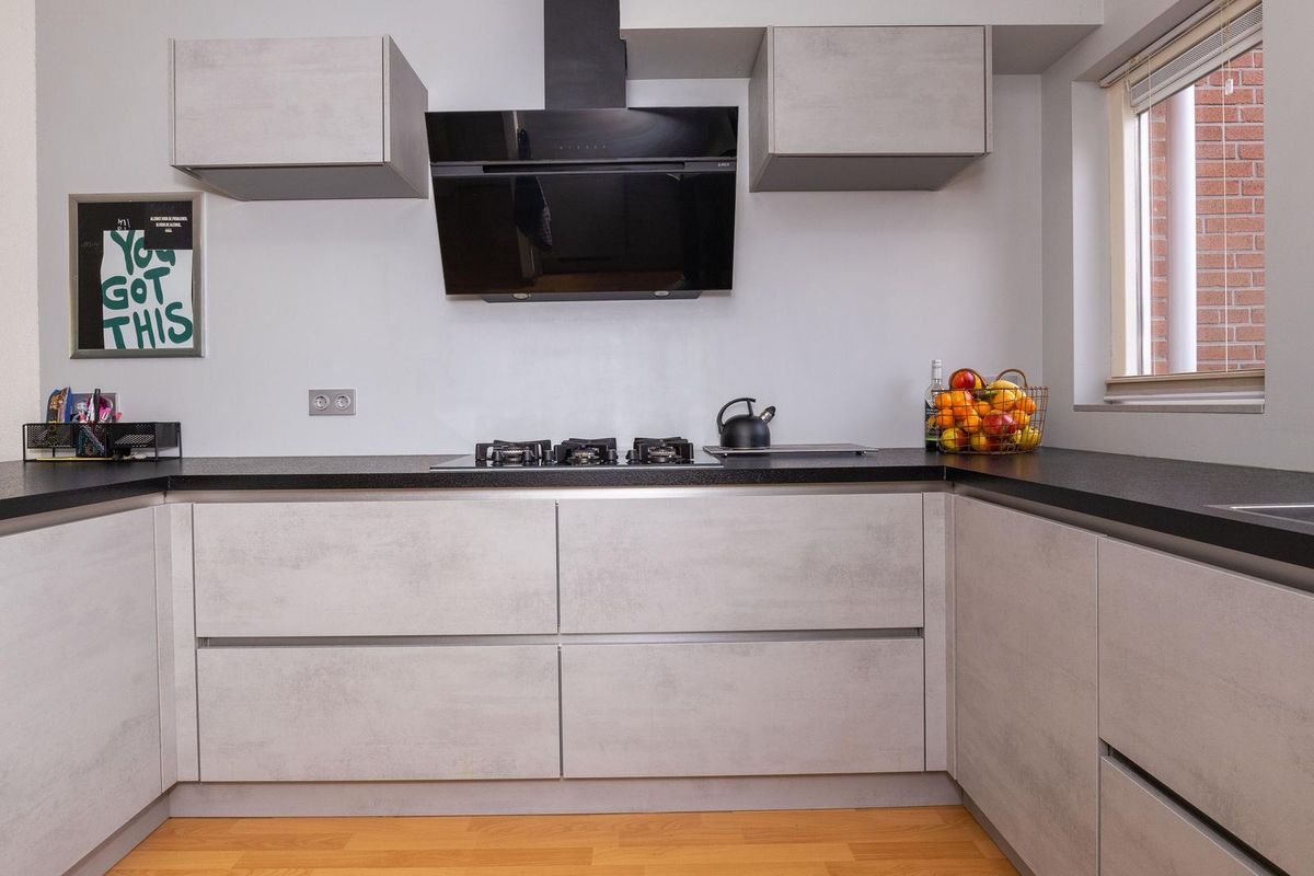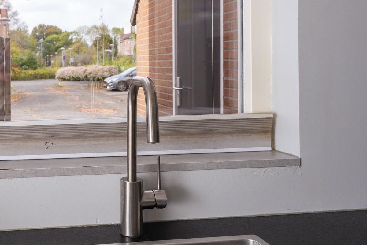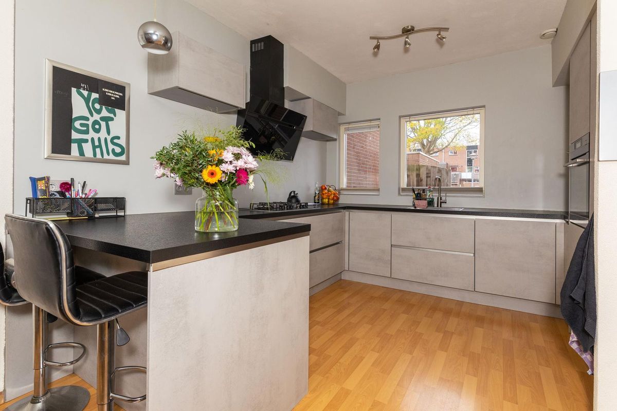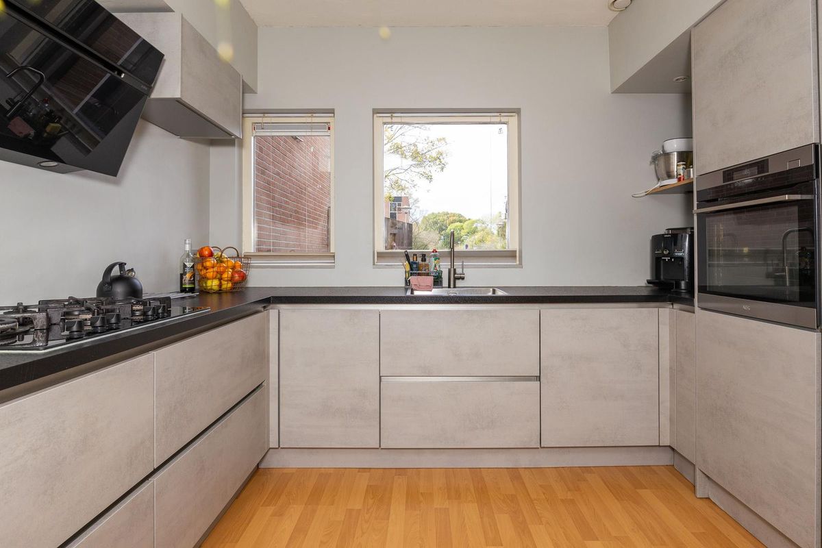 Indeling Begane grond: entree/hal met meterkast, toiletruimte en de vaste trap naar de eerste verdieping, ruime, tuingerichte woonkamer met grote raampartijen en de aangebouwde stenen berging. De open keuken in U-vormige opstelling bevindt zich aan de voorzijde van de woningen is voorzien van diverse inbouw apparatuur. Via de achterdeur of de poort aan de achterkant van de woning is de grote en onderhoudsvriendelijke tuin te bereiken.