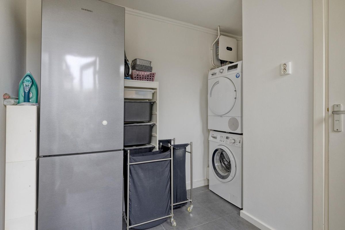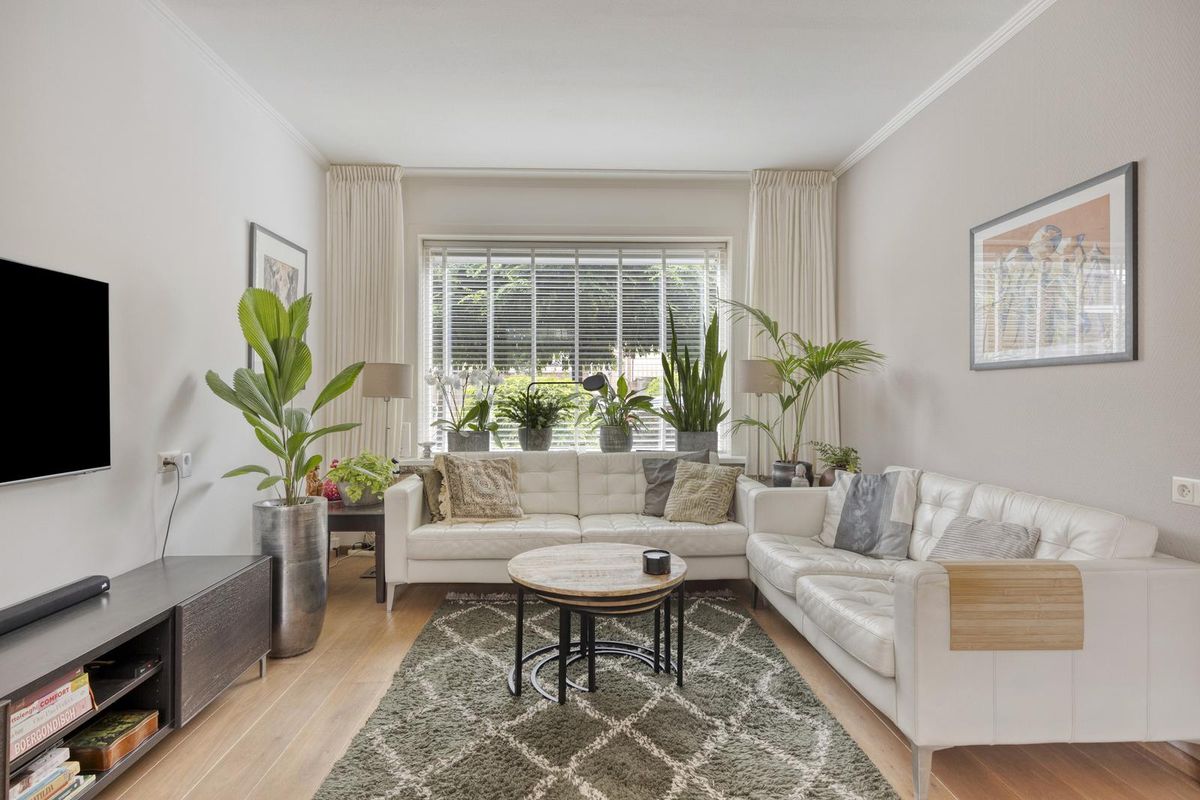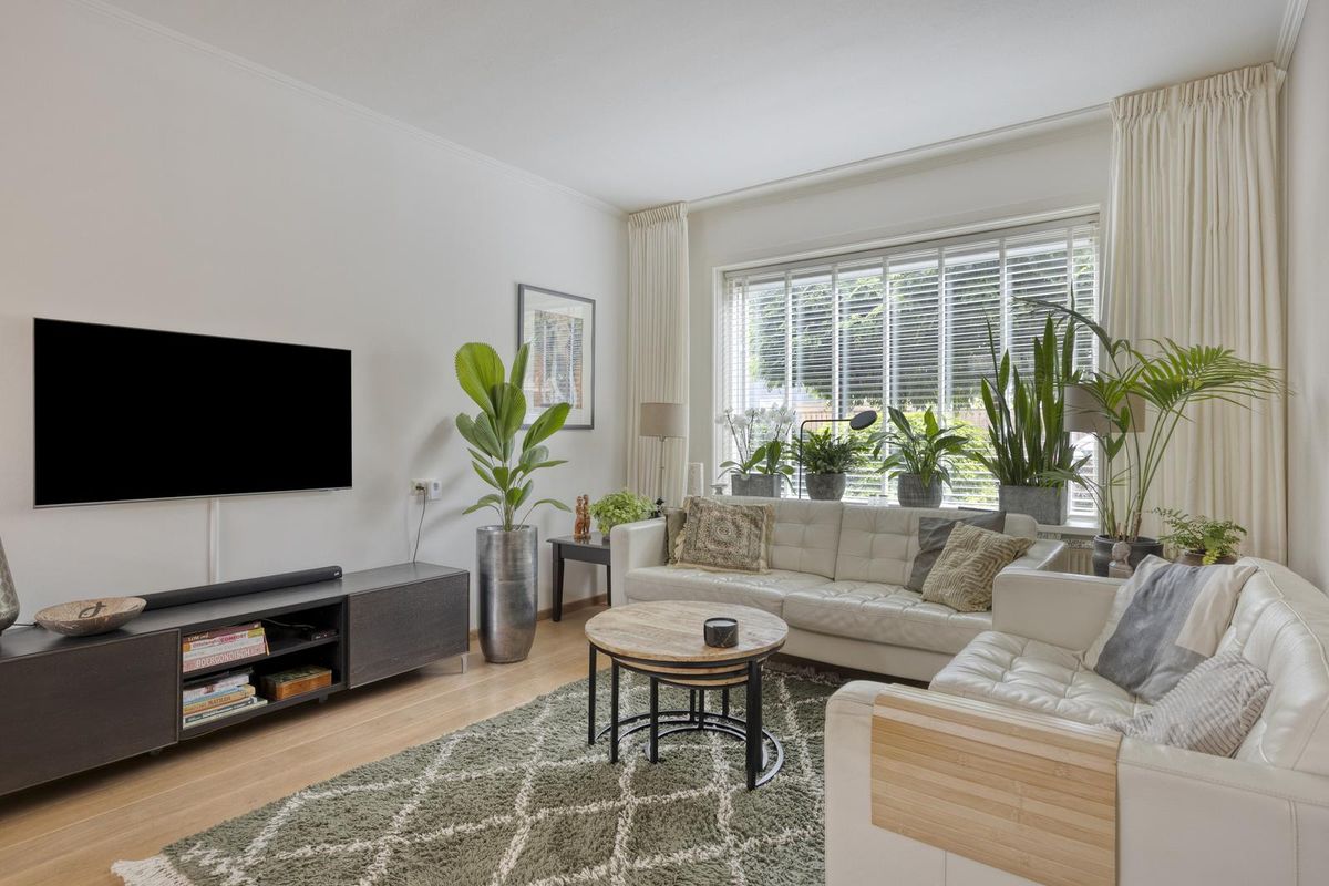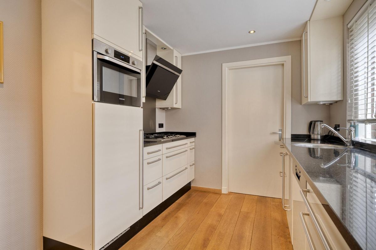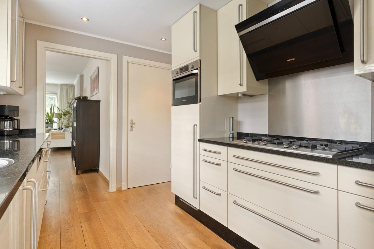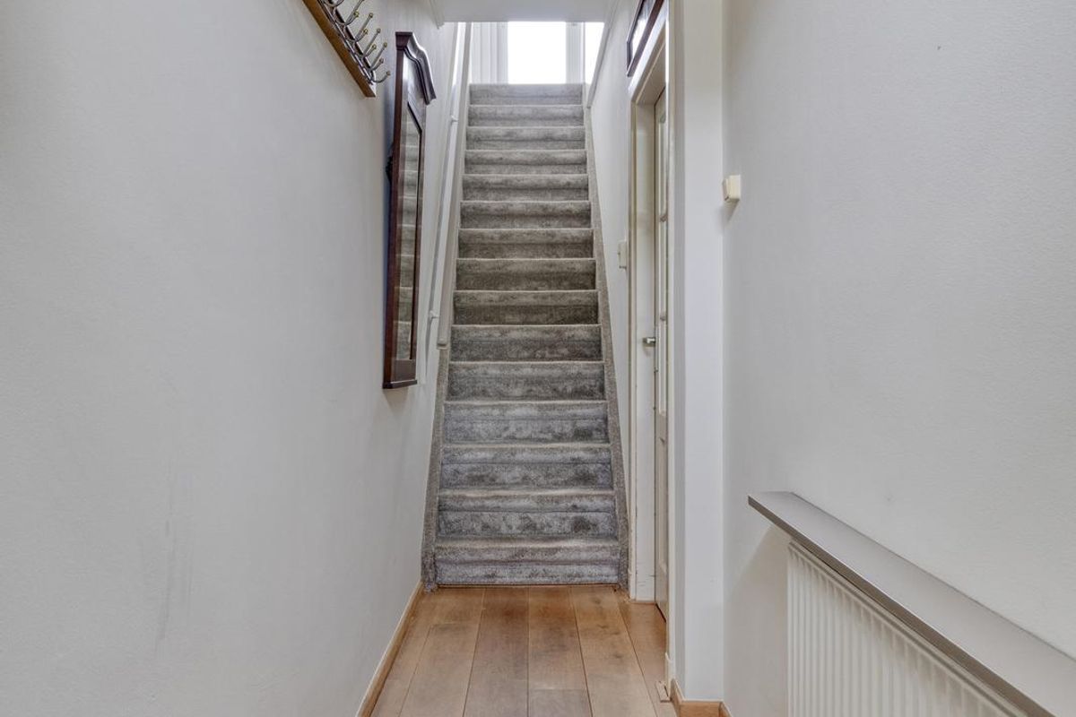 Indeling: Entree via de hal. De doorzonwoonkamer is voorzien van een eiken houten vloer, dubbele deur naar de tuin en airconditioning. De halfopen keuken is uitgerust met een spoelbak, 5-pits gaskookplaat, vaatwasser combioven en afzuigkap. Aangrenzend aan de keuken bevindt zich een praktische bijkeuken met aansluiting voor wasmachine en droger en opstelplaats voor de cv-ketel. tevens bevindt zich hier ook het toilet. Vanuit de bijkeuken heb je toegang tot de tuin.