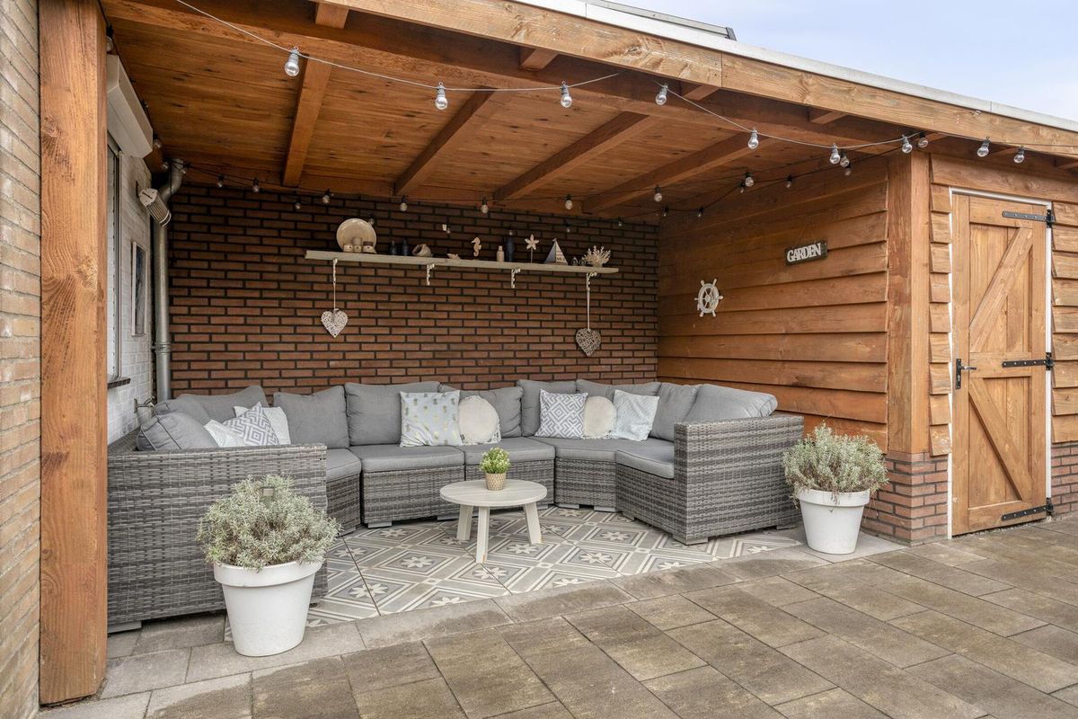 Vanuit de keuken stap je de onderhoudsvriendelijke achtertuin in. De tuin is aangelegd met sierbestrating, zodat je weinig onderhoud hebt en het geheel makkelijk kunt aankleden met planten of potten. Onder de overkapping van 4 meter lang en 2,44 meter breed zit je ook op warme, regenachtige dagen heerlijk buiten. Achter de overkapping staat de stenen berging van 3,19 meter breed en 2,37 meter diep, met genoeg ruimte voor fietsen en tuinspullen. Via de brandgang kom je eenvoudig met de fiets achterom.