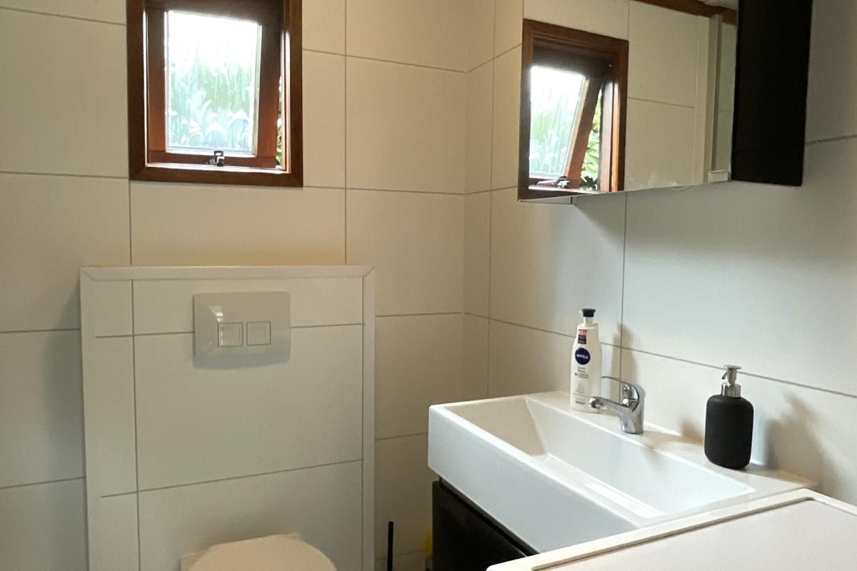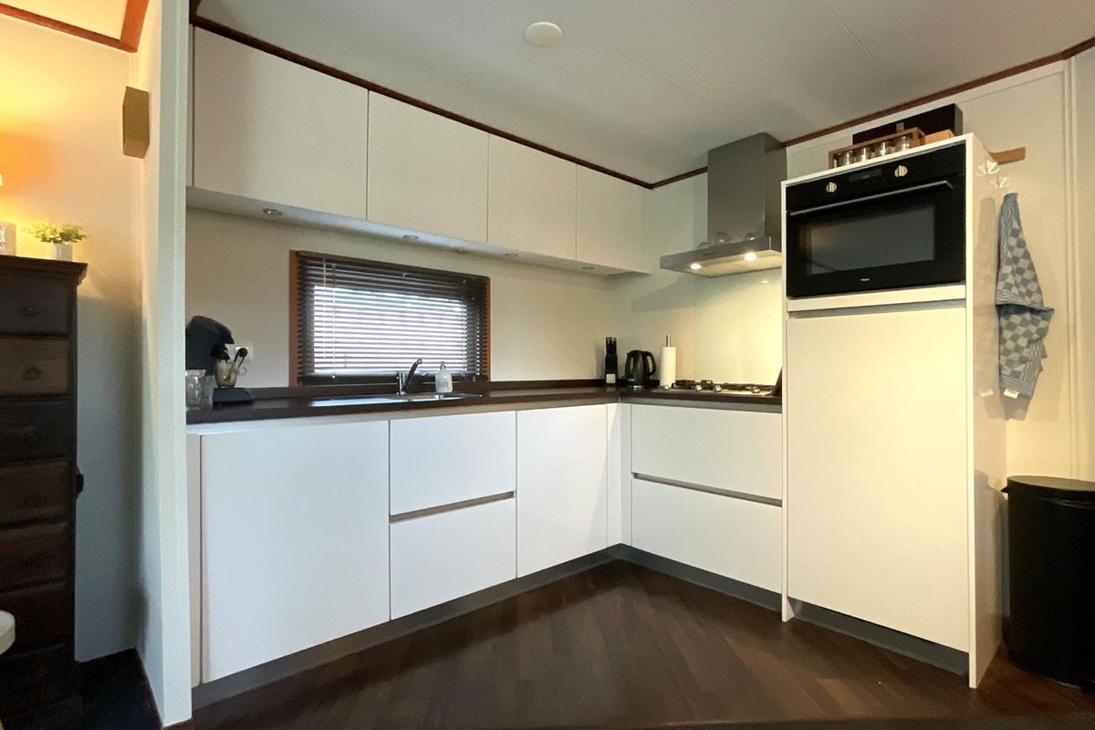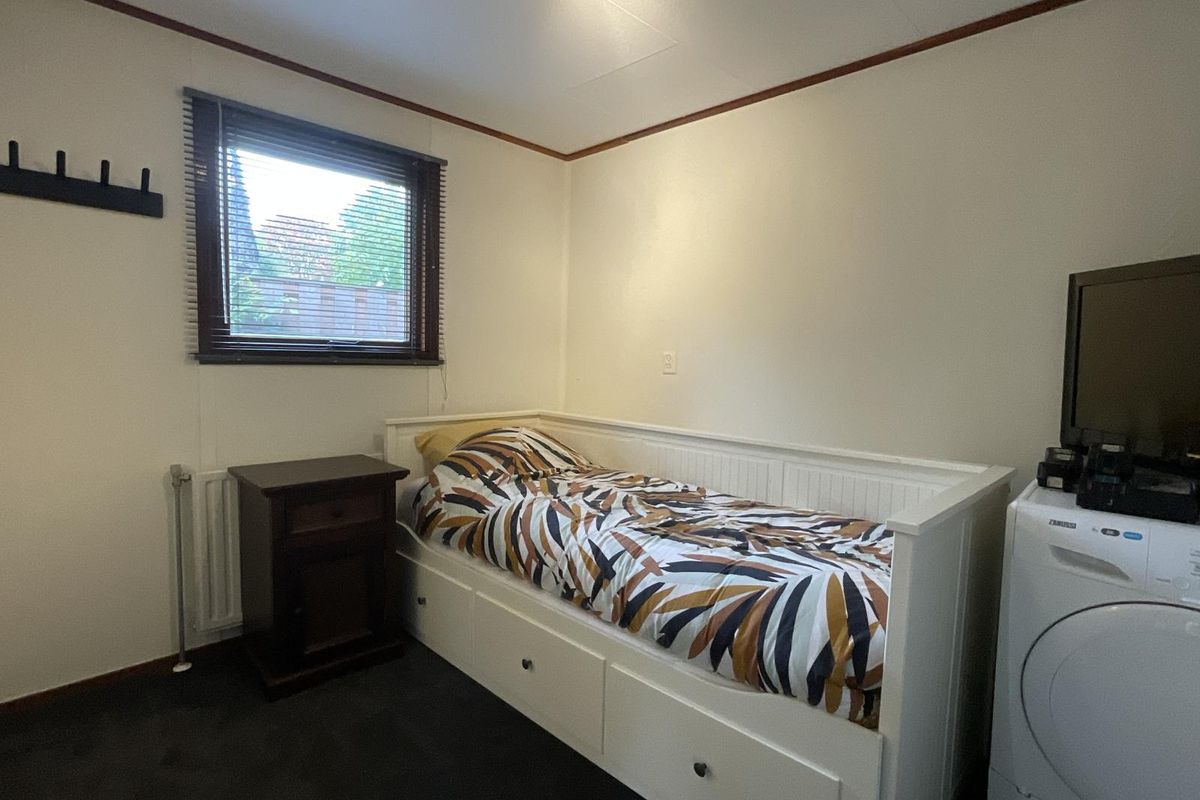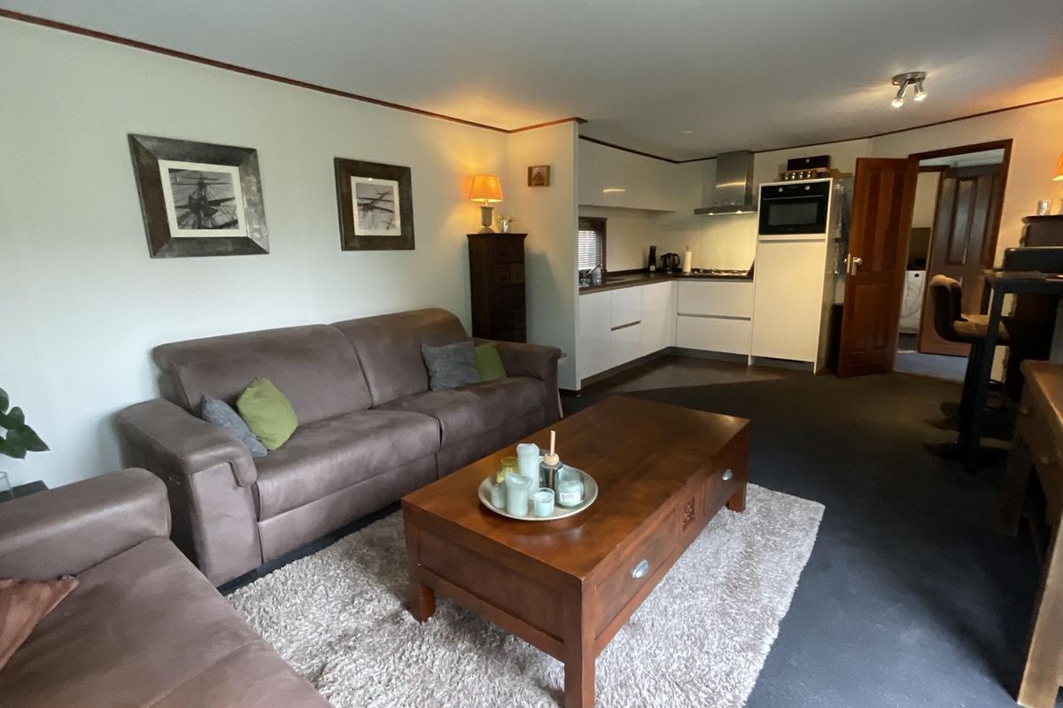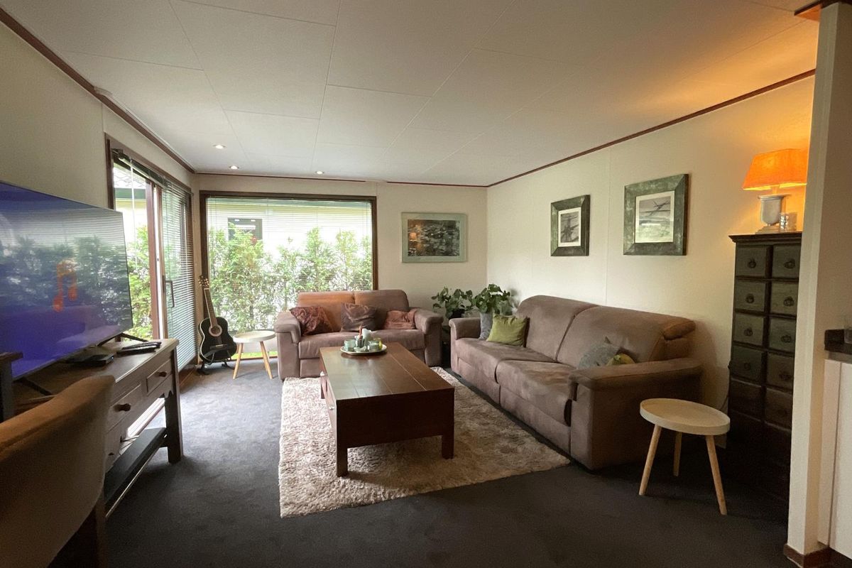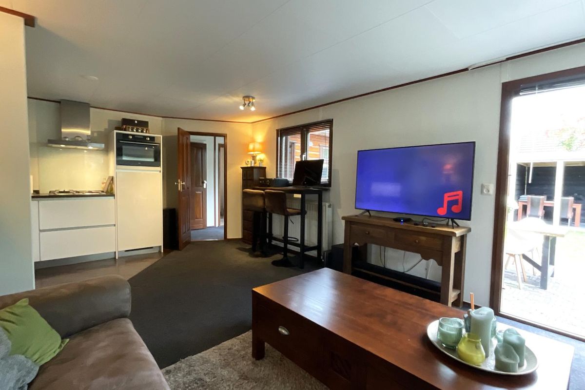 Indeling: Via de entree bereikt u de verschillende vertrekken. De lichte woonkamer met grote schuifpui en veel ramen zorgt voor een prettige natuurlijke lichtinval en een ruimtelijke sfeer. Vanuit de woonkamer kijkt u prachtig uit op de tuin en de overkapping. De ruimte is sfeervol ingericht en biedt plaats voor een comfortabele zithoek en eethoek. De open keuken sluit naadloos aan op de woonkamer en is uitgevoerd in een moderne witte kleurstelling. De keuken is voorzien van een gaskookplaat, inbouw combimagnetron, koel-vrieskast, spoelbak met kraan en voldoende kast- en werkruimte. Het chalet beschikt over twee slaapkamers, waarvan één is uitgerust met een grote vaste kast. De badkamer is netjes en compleet, voorzien van een douchecabine, toilet, designradiator en een wastafelmeubel. Ook praktisch: de wasmachine en droger blijven achter in de woning.