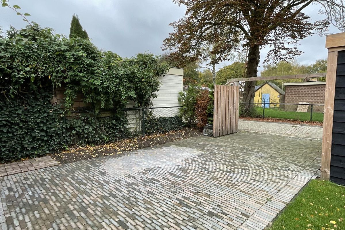 De buitenruimte is een absoluut pluspunt van deze woning. De grote tuin is verzorgd aangelegd met een combinatie van sierbestrating en net gazon, en biedt volop ruimte om te genieten van het buitenleven.