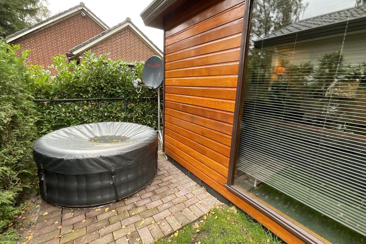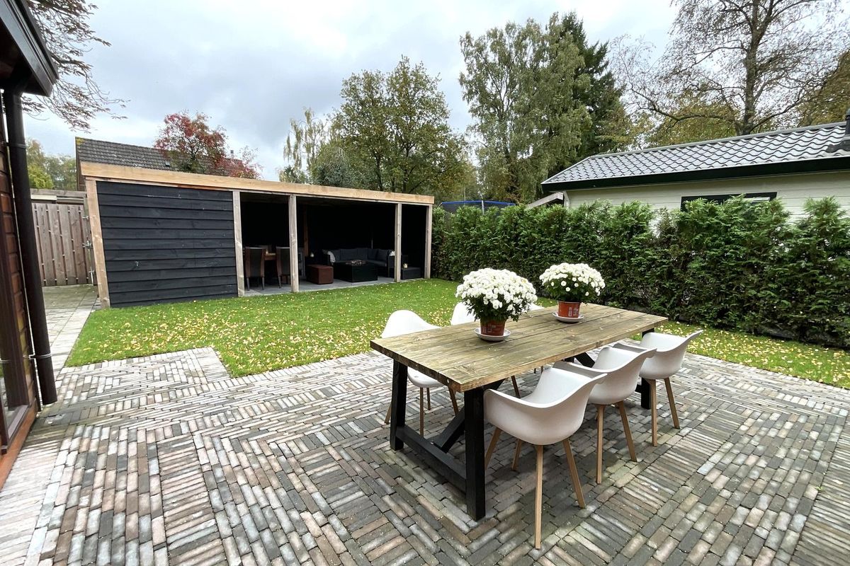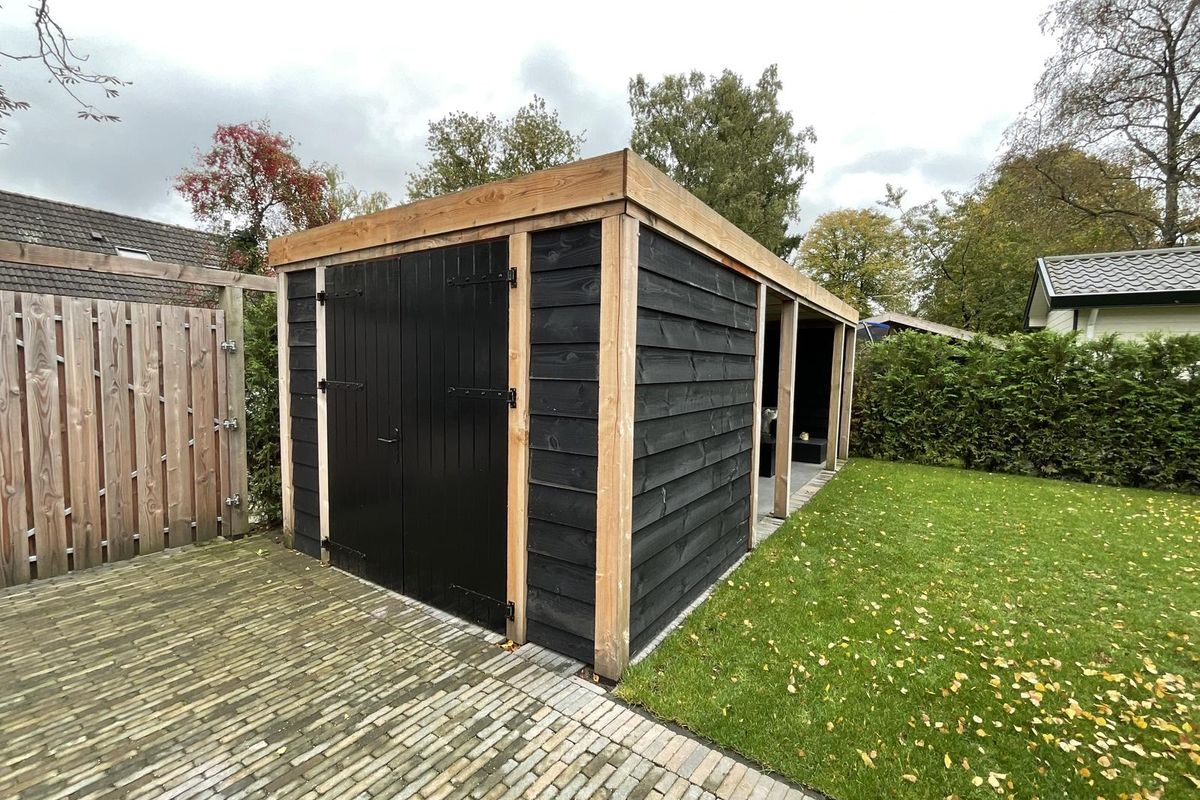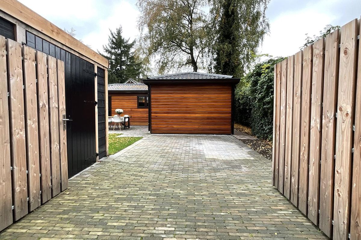 De ruime houten buitenberging met overkapping is een heerlijke plek om te ontspannen of gasten te ontvangen. Voorzien van een sfeervolle loungehoek, eethoek én een houtkachel voor de koelere avonden. De berging biedt daarnaast handige opslagruimte voor tuinmeubilair, fietsen of andere spullen. De tuin is volledig omsloten met groen, waardoor u veel privacy ervaart. Of u nu in de zon wilt zitten of liever in de schaduw onder de overkapping, er is altijd een fijne plek te vinden. Tevens beschikt de woning over een eigen oprit.