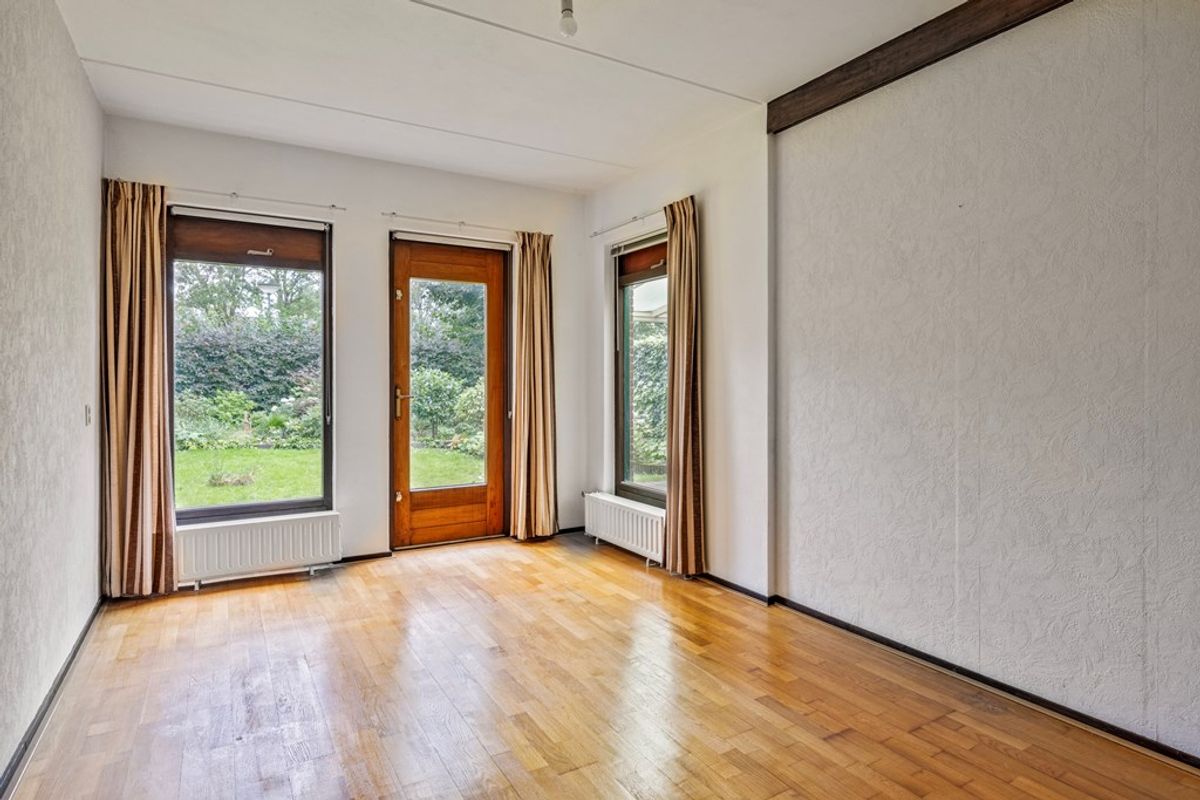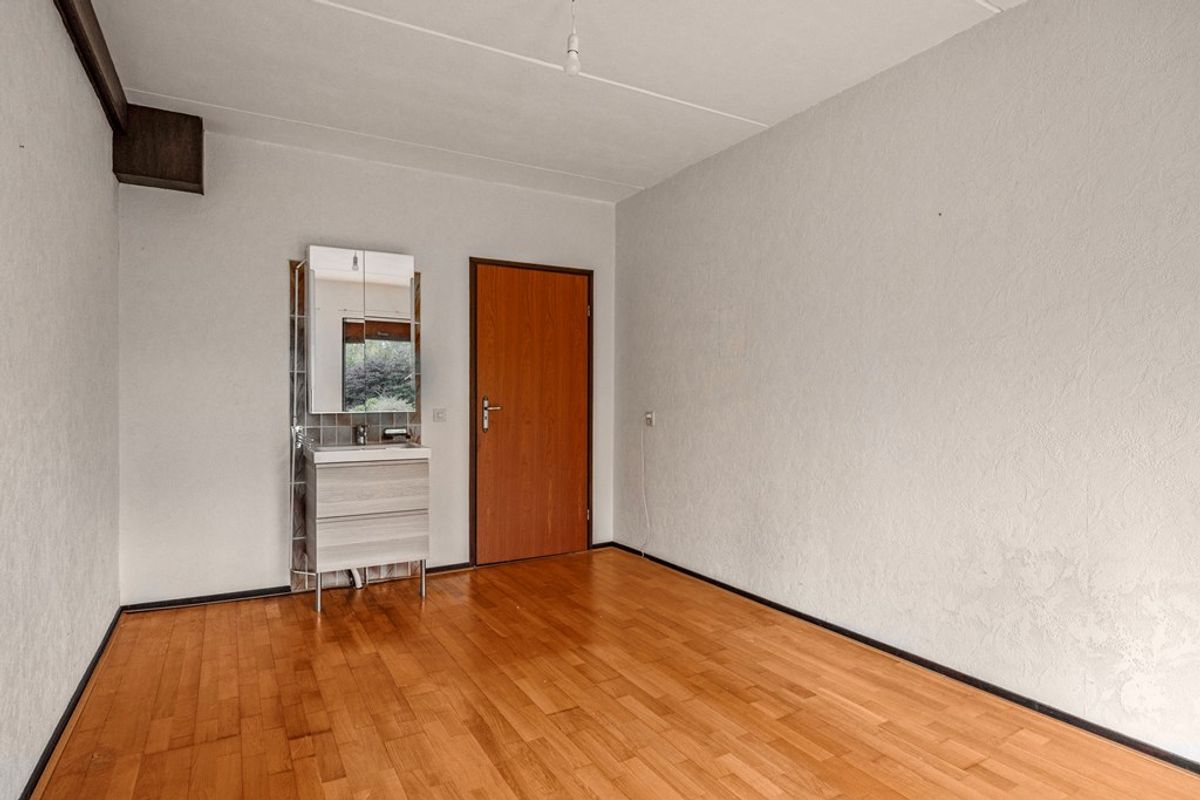 De slaapkamer (14m2) op de begane grond is zeer ruim en voorzien van een eigen wastafel en een deur naar de tuin aan de achterzijde van de woning.