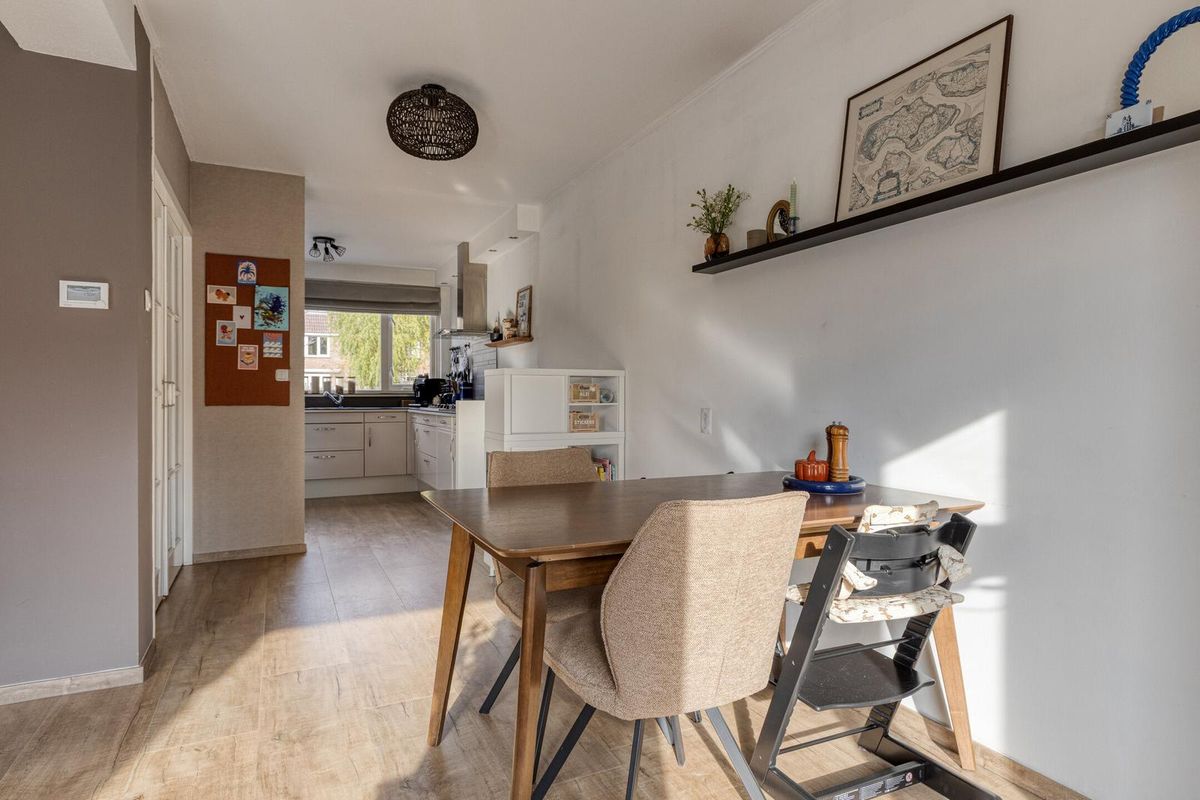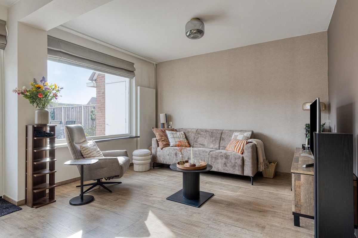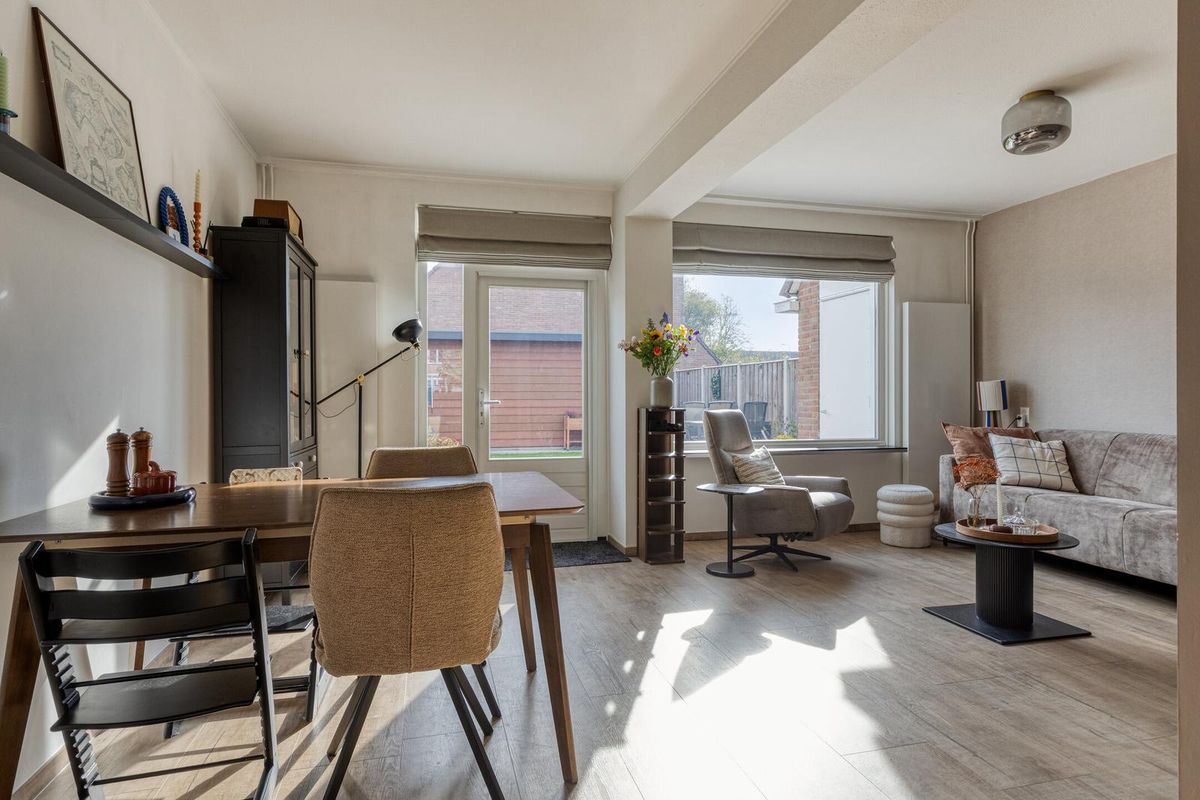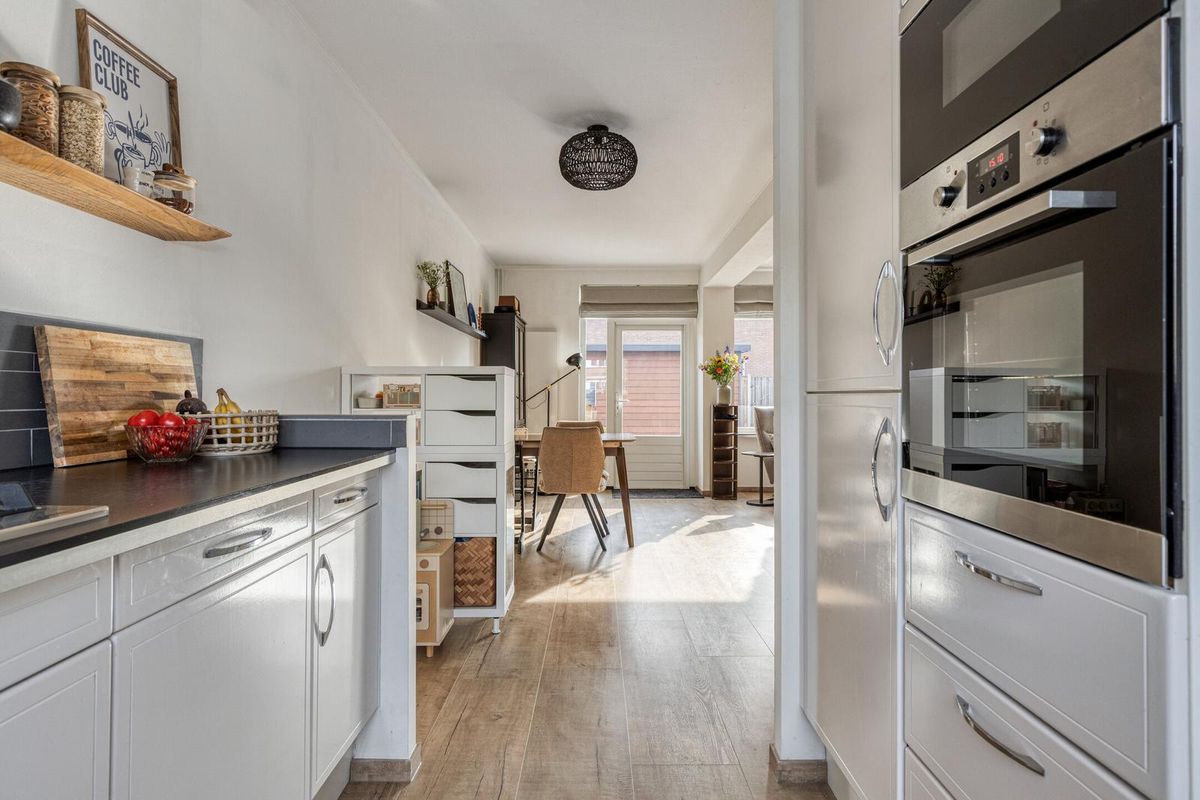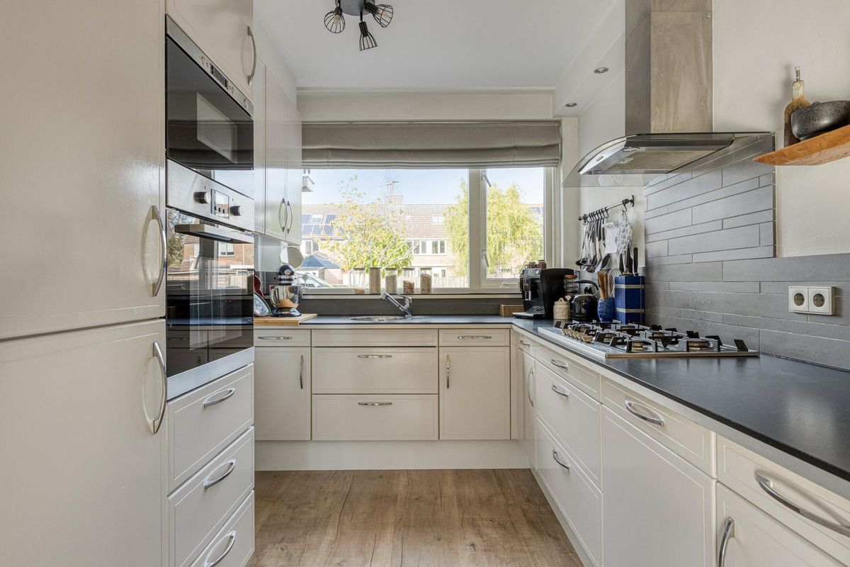 Je komt binnen in de hal met rechts direct een handige bijkeuken met de witgoedaansluitingen. Aangrenzend een modern toilet en de trapopgang. Door de dubbele paneeldeuren met glas komen we in het woongedeelte. De keuken bevindt zich aan de voorzijde en is voorzien van een 6-pits gaskookplaat, afzuigkap, oven, magnetron, koel-vriescombinatie en vaatwasser. Vanuit de keuken komen we in de L-vormige woonkamer met ruimte voor de eettafel en een fijne zithoek. De woonkamer is tuingericht en door het open karakter heb je een goede verbinding met de keuken. De laminaatvloer op de begane grond is in 2023 gelegd.