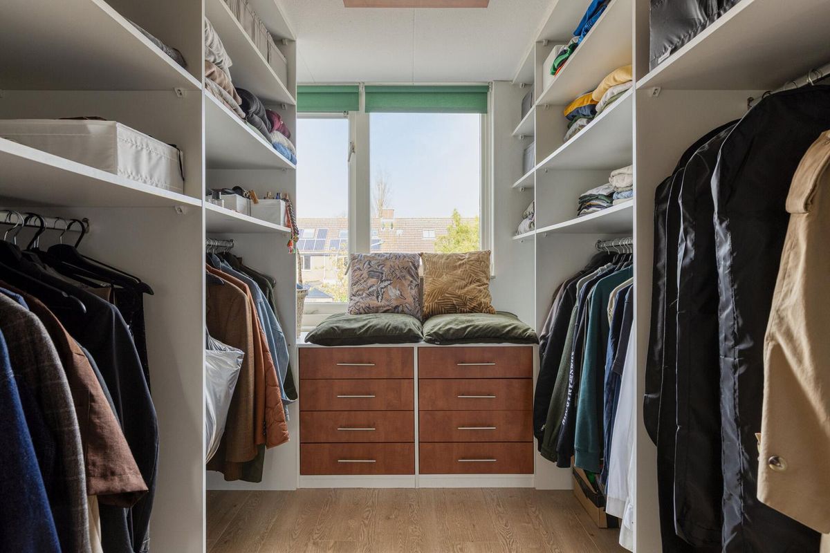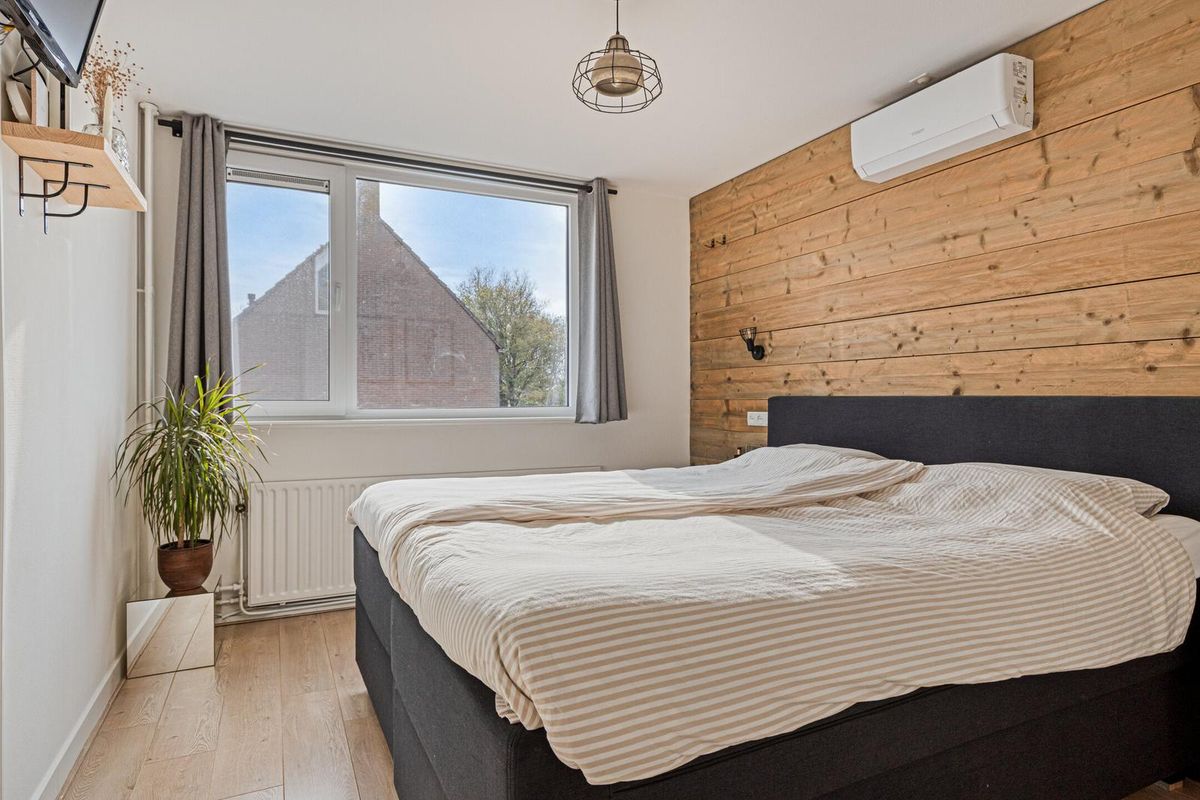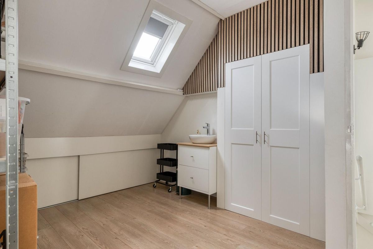 Met een vaste trap is de grote zolder bereikbaar. Hier is op de overloop een fraaie kast gecreëerd met daarachter de Cv-opstelling. De overloop is ruim en kan prima gebruikt worden als bijvoorbeeld kantoor- of hobbyruimte. Verder bevindt zich op de tweede etage nog een ruime slaapkamer met airconditioning. Via een luik in de knieschotten is er nog extra bergruimte toegankelijk. Daarnaast is er nog een vliering gecreëerd voor nog meer bergruimte. Door de nieuwe dakramen op de tweede etage is er veel licht en zijn er voldoende ventilatiemogelijkheden.