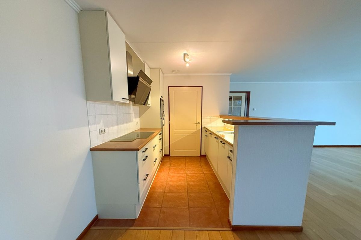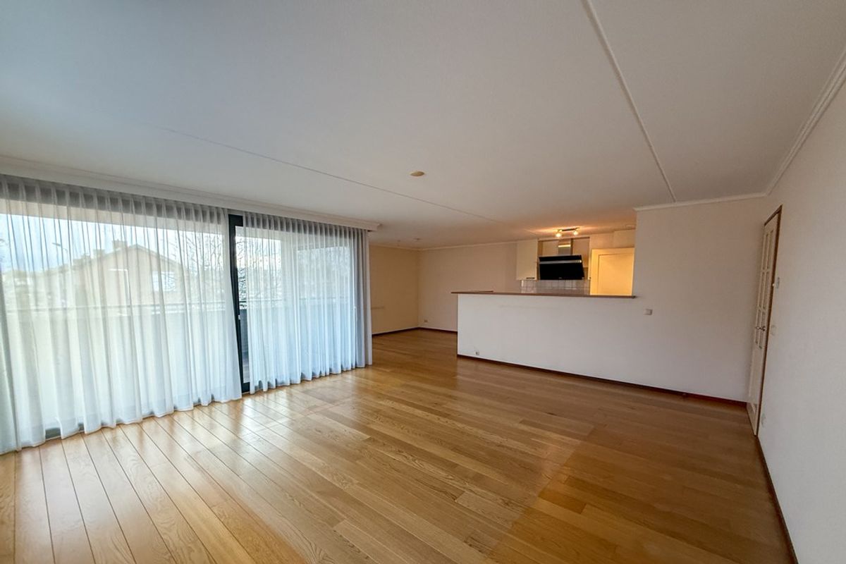 Hal (8 m²), zwevend toilet met fonteintje, royale living (48 m²) met eiken plankenvloer, bestaande uit een lichte woonkamer met open keuken met een complete inbouwkeuken v.v. een keramische kookplaat, afzuigkap, combi magnetron, koelkast en vaatwasser, bijkeuken (5 m²) met aansluiting voor de wasmachine, 2 ruime slaapkamers (16 m² en 11 m²) met eiken plankenvloer en de badkamer (6 m²) met ligbad, douche, wastafel met meubel en een zwevend toilet. Het terras/loggia (6 m²) is overdekt en beschikt over veel privacy.