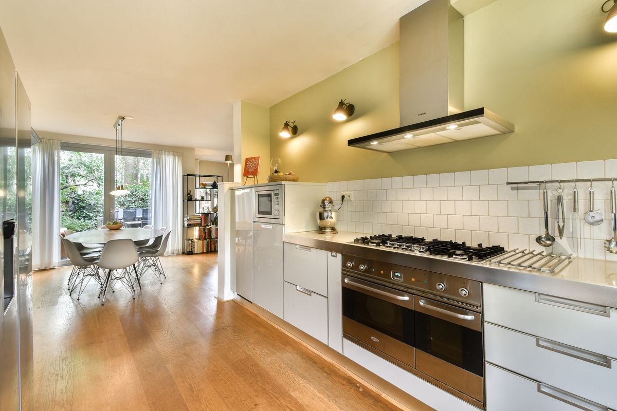 Aan de voorzijde van de woning ligt de ruime Italiaanse keuken in L-opstelling. Een droom voor iedere kookliefhebber! De keuken biedt volop werk- en kastruimte en is uitgerust met diverse inbouwapparatuur, waaronder een Boretti dubbele oven met 5-pits gaskookplaat, een magnetron, afzuigkap, vaatwasser en plintverwarming. De open verbinding met de woonkamer maakt dit een gezellige plek waar koken, eten en samenzijn naadloos in elkaar overlopen.