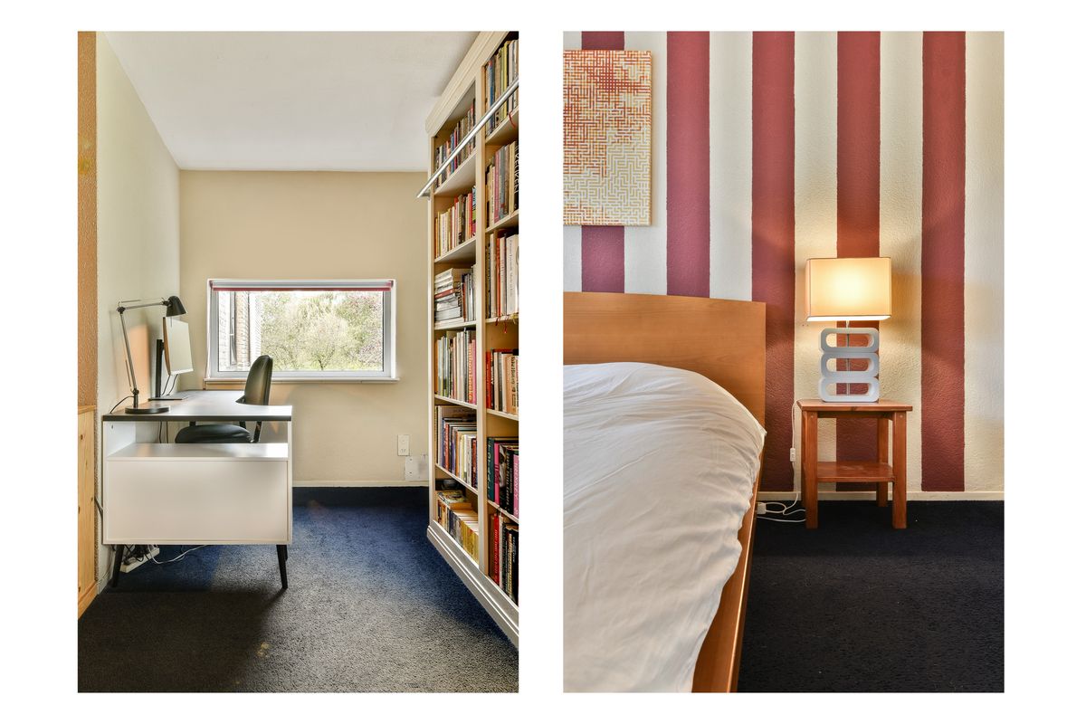 De tweede verdieping biedt een volwaardige vierde slaapkamer met veel licht en een ingebouwde kastenwand. Vanuit deze kamer is er toegang tot het riante dakterras, een heerlijke plek om te genieten van de zon en het uitzicht over de groene omgeving. Hier bevinden zich ook de wasmachineaansluiting en de Intergas combiketel (2024).