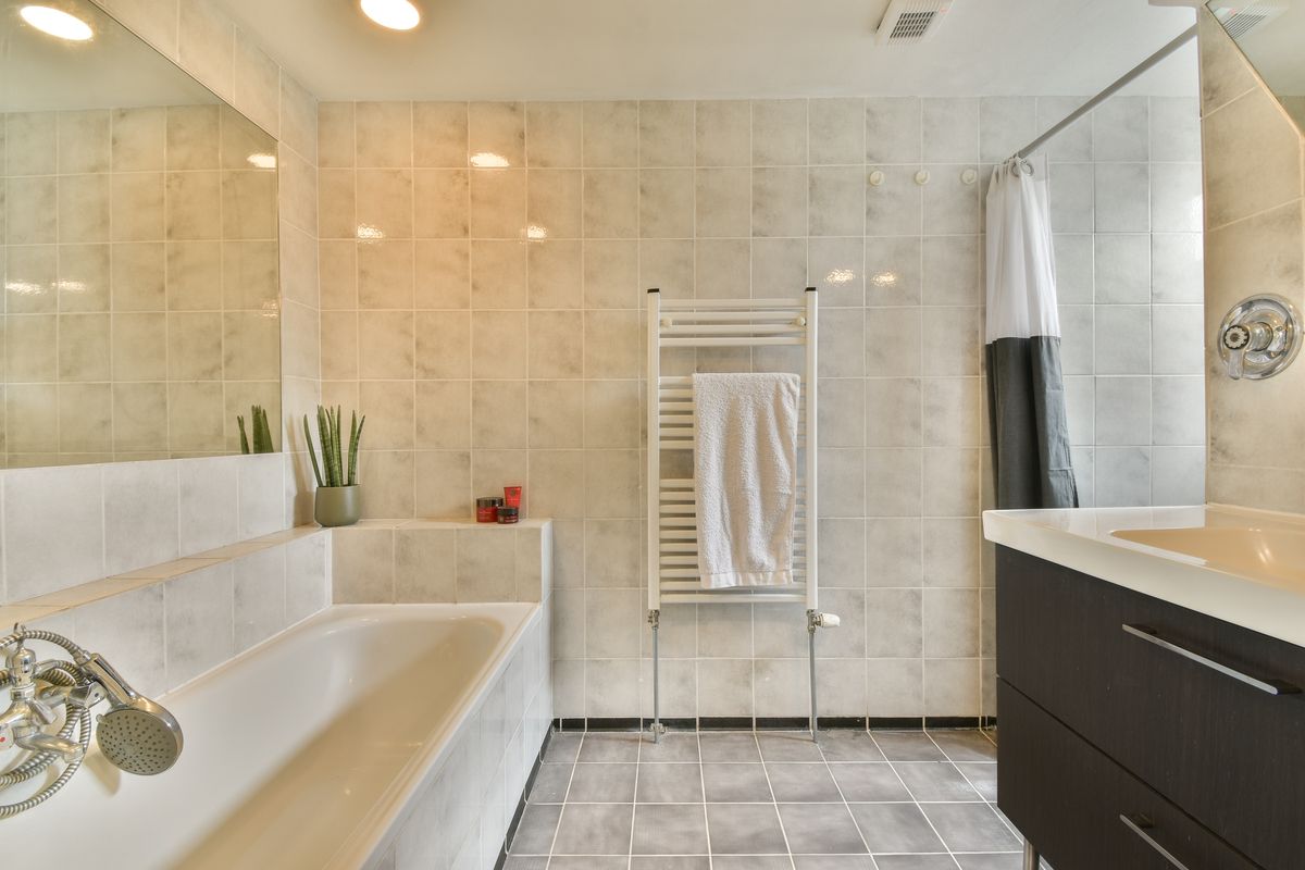 Op de eerste verdieping leidt de overloop naar drie goed bemeten slaapkamers: twee aan de achterzijde en één aan de voorzijde van het huis. De kamers zijn licht, hebben rechte wanden en zijn daardoor goed in te richten. Op deze verdieping bevindt zich tevens een separaat tweede toilet (hangend, met fontein). De ruime badkamer is compleet ingericht met een ligbad, inloopdouche, wastafelmeubel, mechanische ventilatie en een handdoekradiator — een fijne plek om even helemaal tot rust te komen.
