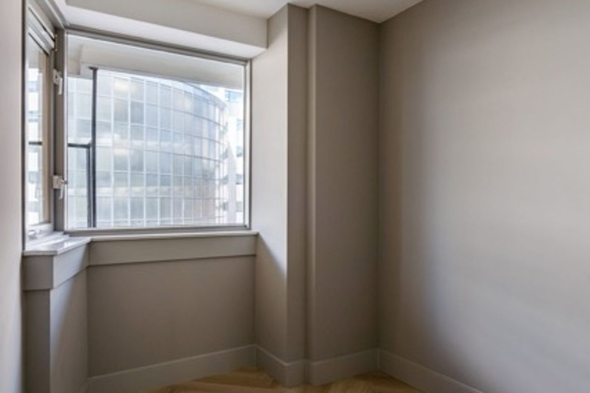 De slaapkamer bevindt zich direct rechts van de voordeur. Tegenover de slaapkamer ligt een kleinere kamer die gebruikt kan worden als walk-in closet, kantoorruimte of garderobekamer. De ruime, stijlvolle badkamer is voorzien van hoogwaardige Grohe-kranen en beschikt over een apart toilet.