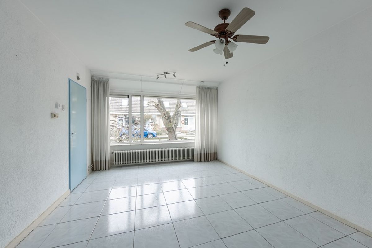 Via de 5 meter diepe voortuin kom je bij de entree van de woning. Via de hal met toilet en garderobe kom je in de woonkamer. Zowel aan de voor- als achterzijde zijn alle kozijnen vernieuwd in kunststof met dubbel glas++. De plavuizenvloer in de woonkamer heeft vloerverwarming.