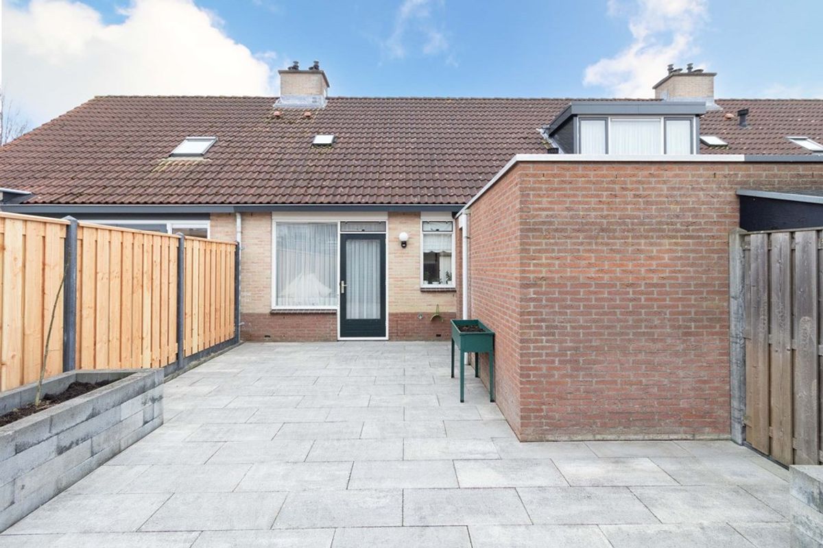De verzorgde achtertuin is gelegen op het noorden en is onderhoudsvriendelijk aangelegd met een ruim terras, vaste plantenbakken en erfafscheidingen. Dankzij de open indeling is er voldoende ruimte voor een zit- en eethoek. Achterin de tuin bevindt zich een vrijstaande houten berging, ideaal voor het opbergen van fietsen en tuingereedschap. De tuin biedt veel privacy en is een fijne buitenruimte om het hele jaar door van te genieten.