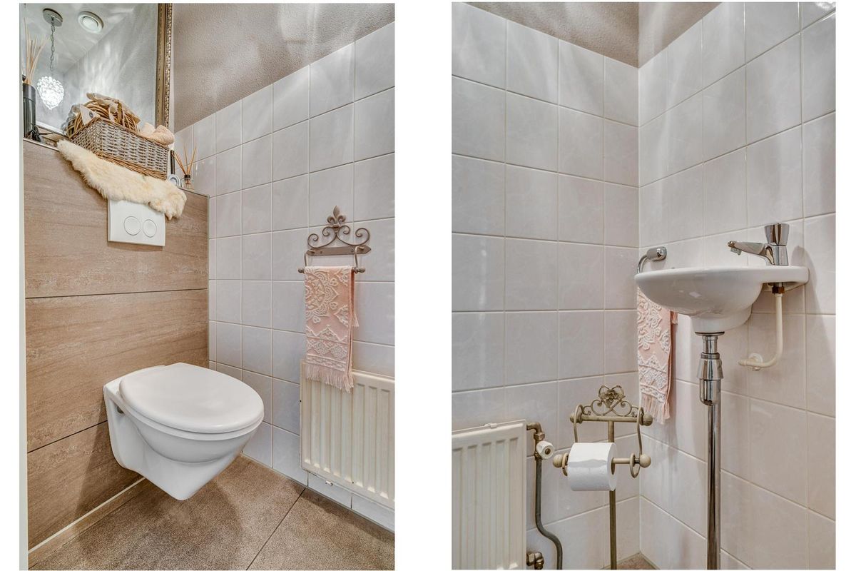Vanuit de beklinkerde oprit is de entree van de woning te bereiken. De hal geeft toegang tot de meterkast, separate toiletruimte, trapopgang naar de 1e verdieping en de keuken. De toiletruimte is voorzien van een zwevend toilet, fonteintje, mechanische ventilatie en verwarming. De ruime keuken is aan de voorzijde van de woning gelegen en voorzien van een gasfornuis, afzuigkap, oven, koelkast, diepvries, dubbele spoelbal, vaatwasmachine en veel opbergruimte. Via de keuken is de zeer ruime woonkamer gelegen. Hier zijn 2 lichtkoepels geplaats wat voor extra natuurlijk lichtinval zorgt. Middels 2 openslaande tuindeuren is de serre te bereiken en middels een loopdeur de bijkeuken. Hier is een extra klein keukenblok geplaatst en is er toegang tot de inpandige garage waar ruimte is om een auto in te plaatsen en is er een loopdeur naar de tuin. De begane grond is voorzien van vloerverwarming met uitzondering van de hal.