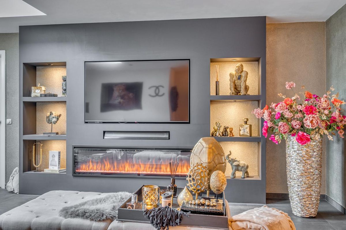 De overloop geeft toegang tot de 3 slaapkamers en badkamer. De slaapkamers zijn ca. 6,5m², 11,5m² en 12,5m² groot en allen voorzien van eenzelfde laminaatlover en rolluiken. De masterbedroom heeft verder de beschikking over een airco. De badkamer is volledig betegeld en voorzien van een ligbad met douchefaciliteit, wastafel met meubel, zwevend toilet, verwarming, mechanische ventilatie, buitenraam en een rolluik.