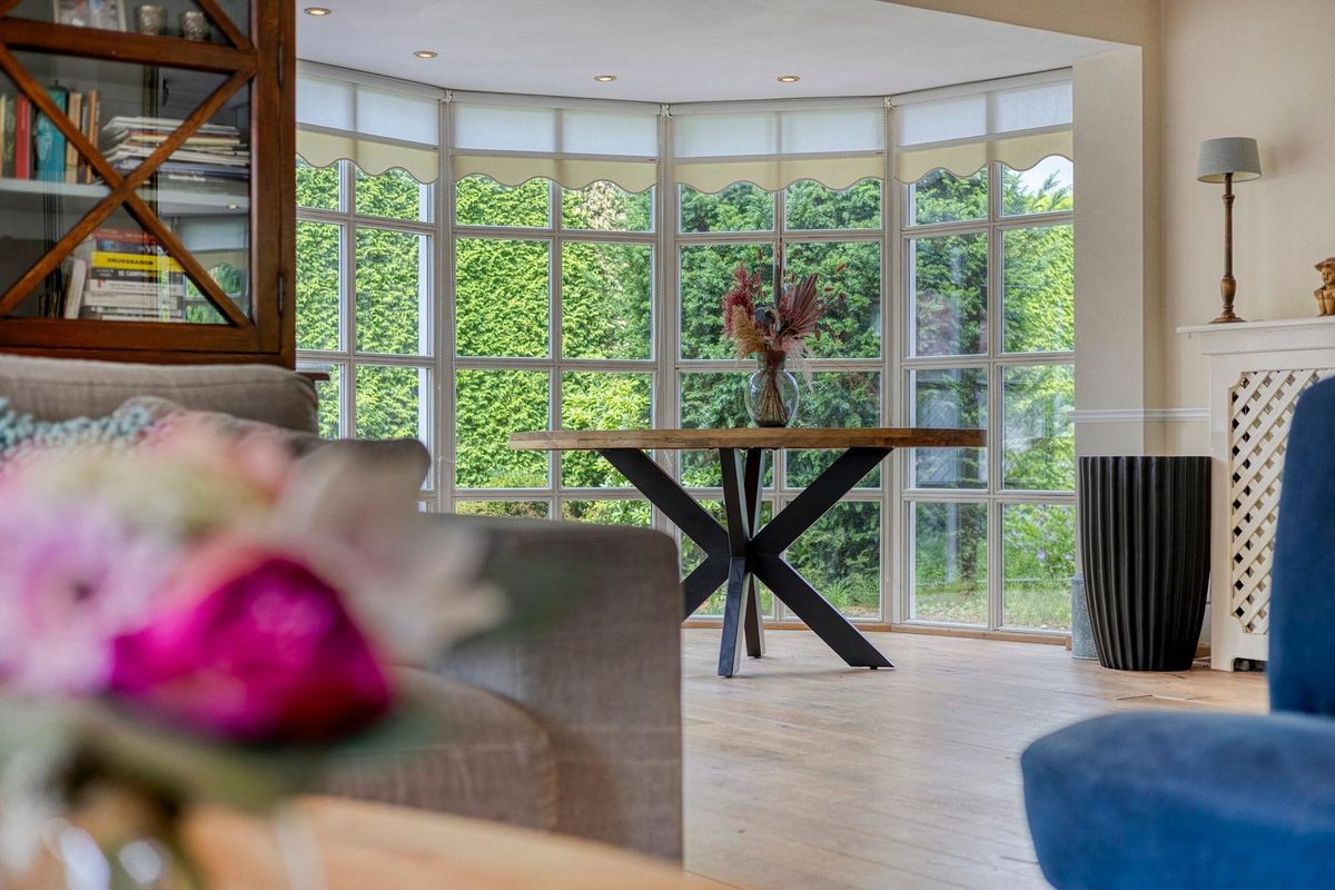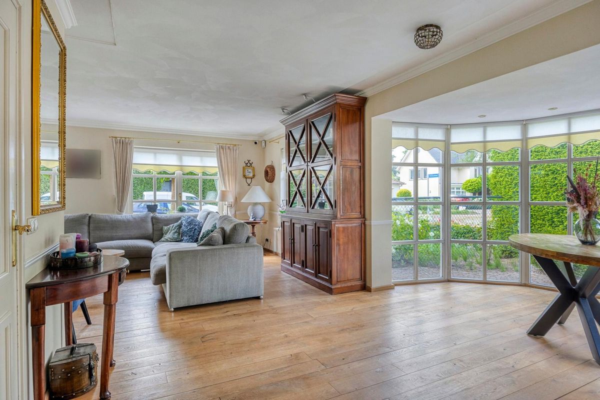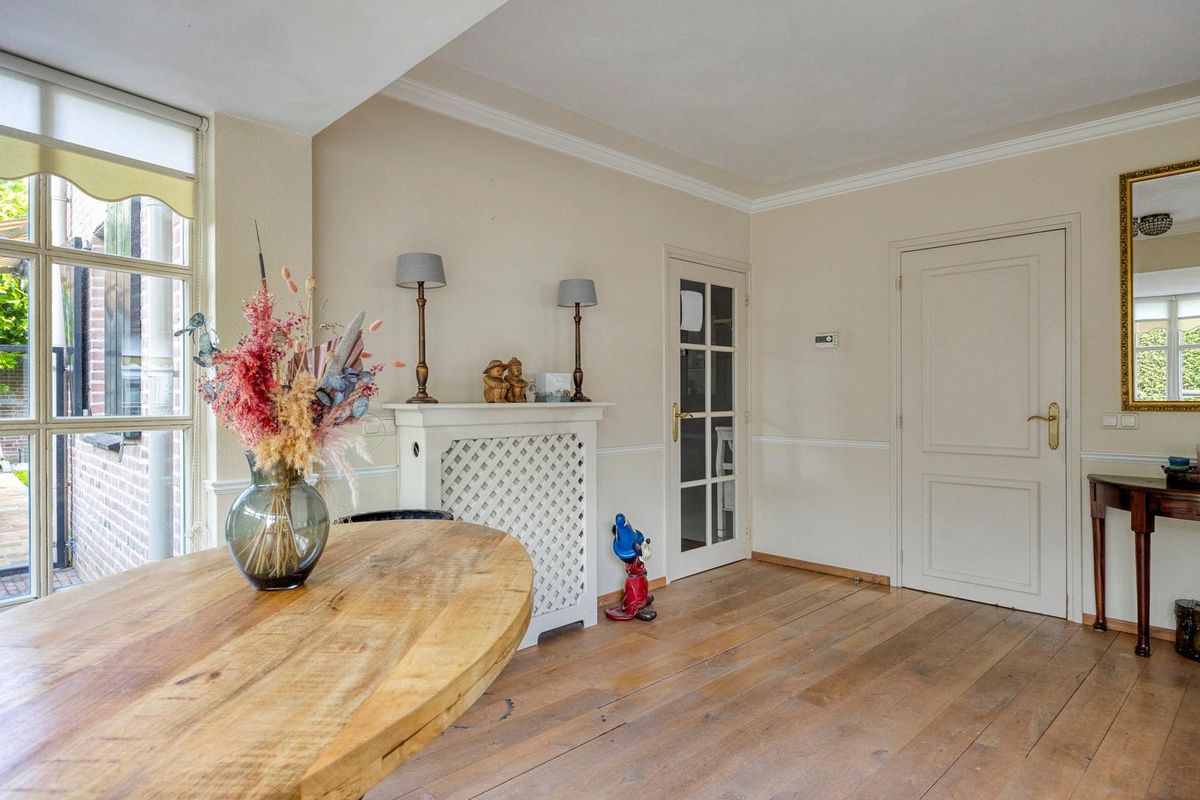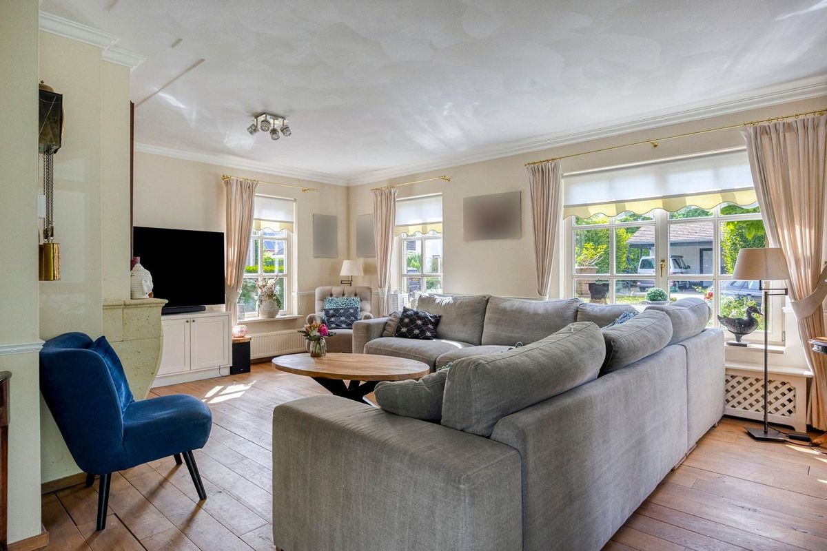 Via de royale oprit (met plaats voor twee auto's) bereikt u de voordeur. De hal biedt toegang tot de garderobe, meterkast, trapopgang en het toilet. De lichte woonkamer valt direct op door de sfeervolle erker, een heerlijke plek voor een zithoek of eettafel met uitzicht op de fraai aangelegde achtertuin. Aan de voorzijde is de huidige zithoek gesitueerd, met een gezellige gashaard.