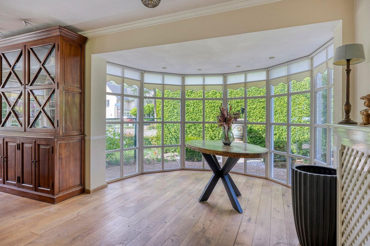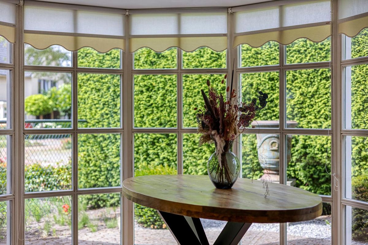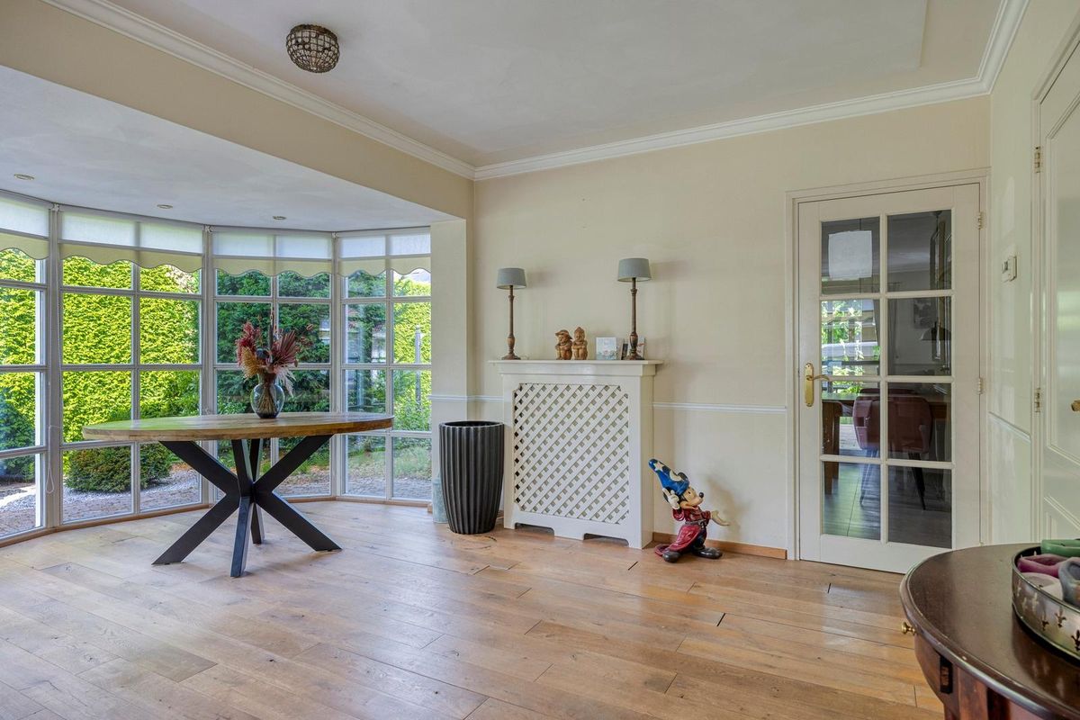 De achtertuin is een groene oase met terras, gazon, vaste beplanting en een overkapping met lichtkoepel en inbouwspots. Dankzij de leibomen geniet u volop van privacy.