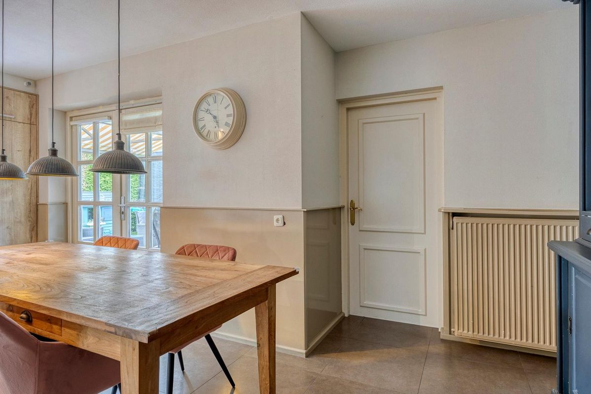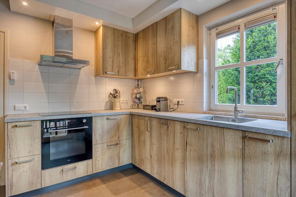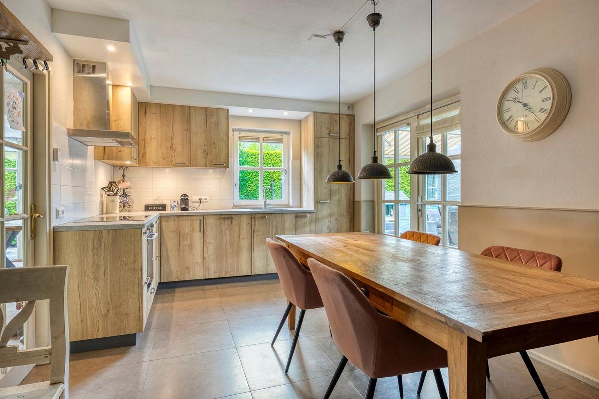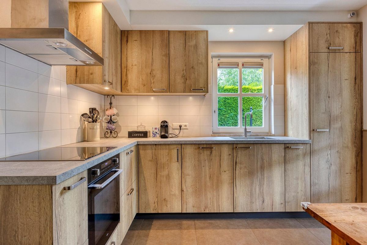 De ruime nieuwe woonkeuken (2025) in hoekopstelling beschikt over inbouwapparatuur zoals inductiekookplaat, afzuigkap, combi oven/magnetron, koelkast, diepvriezer en vaatwasser. Hier is voldoende plek voor een grote eettafel. Aangrenzend vindt u de bijkeuken met extra keukenblok, spoelbak en wasmachineaansluitingen, plus toegang tot de tuin.