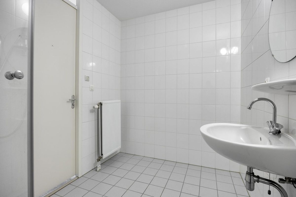 * Volledig betegelde badkamer van ca. 2.85 x 2.05 voorzien van douchecabine en wastafel.