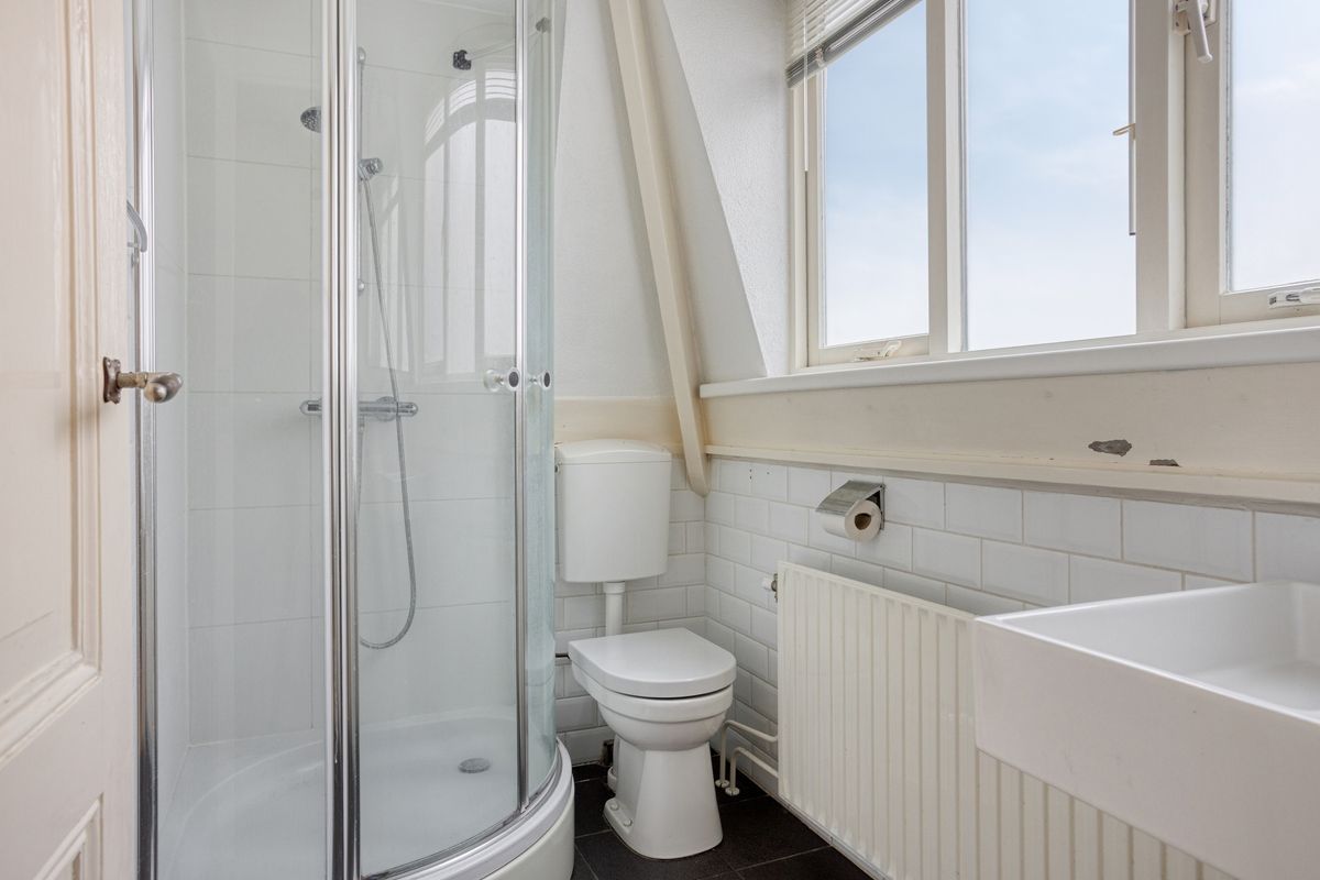 • Een badkamer met toilet, douche en wastafel;