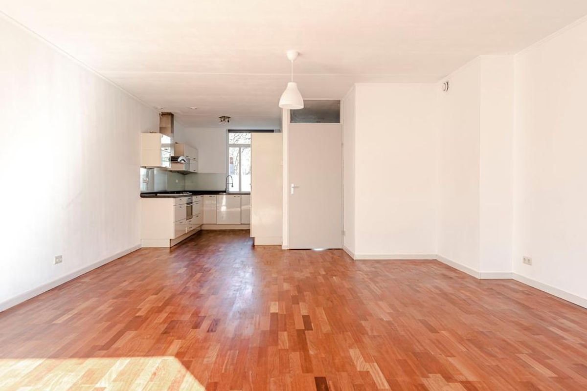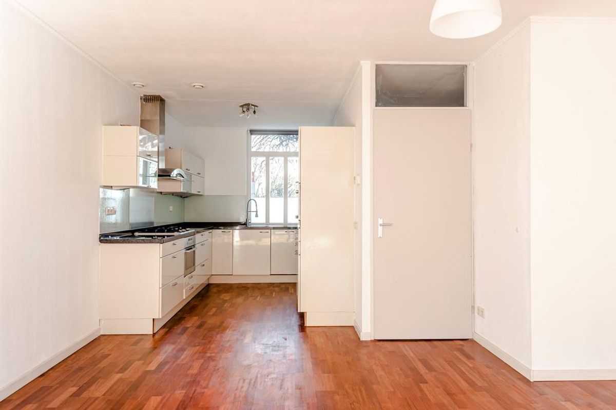 Deze ééngezinswoning beschikt over een ruime woonkamer met open keuken. De woonkamer heeft een hoog plafond met veel lichtinval en een achtertuin met een achter deur. De keuken is voorzien van verschillende moderne inbouwapparatuur. Daarnaast de begane grond is voorzien van een achtertuin en een WC .