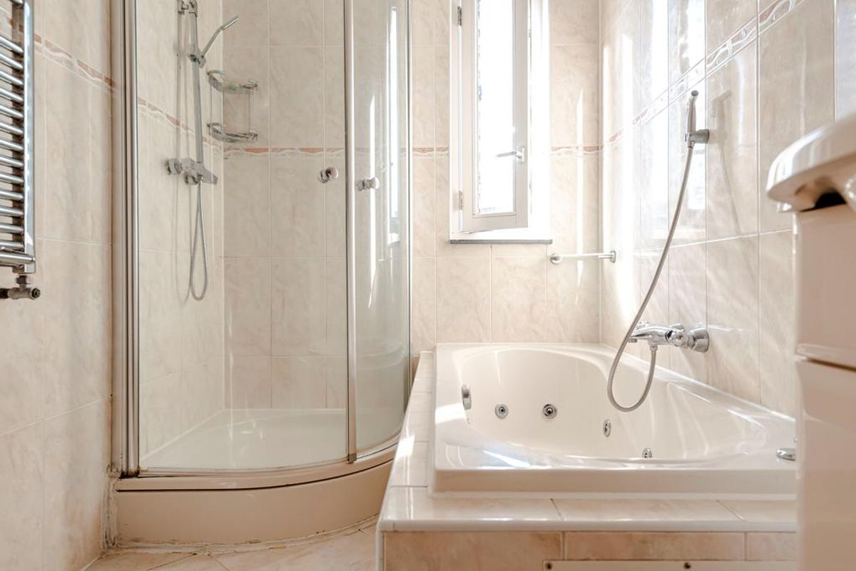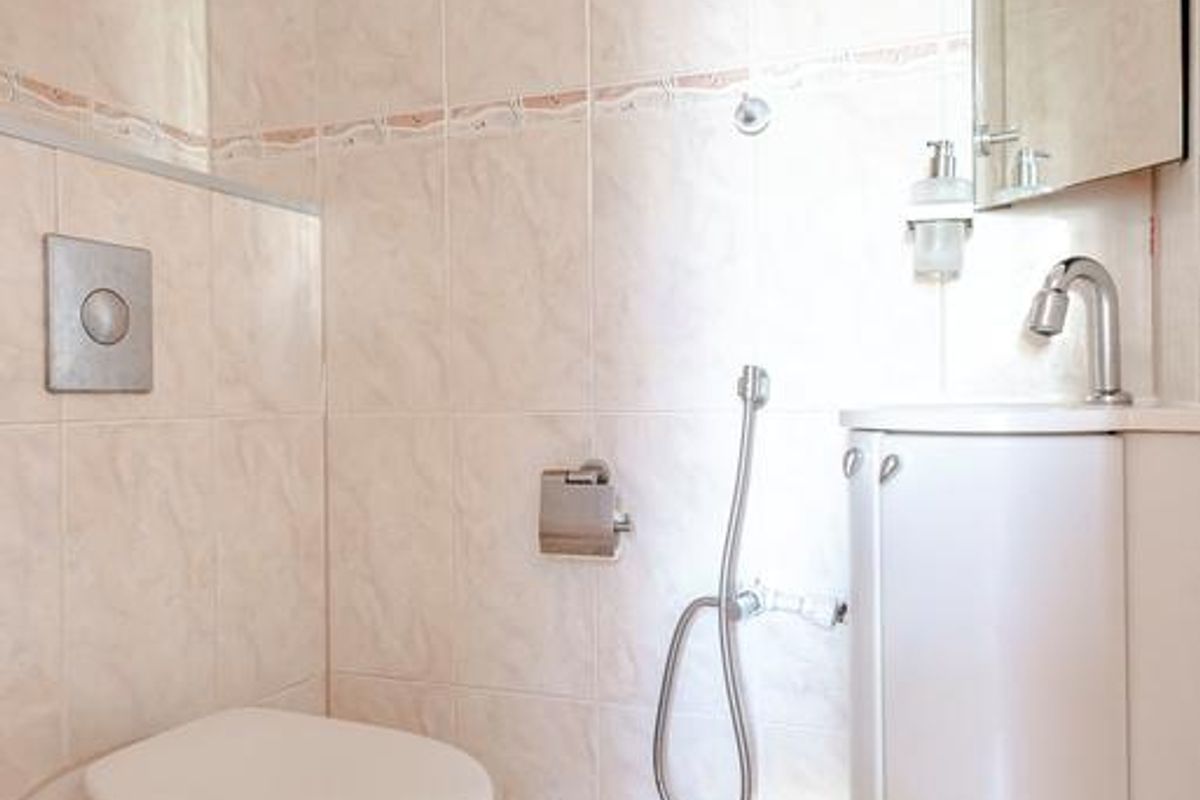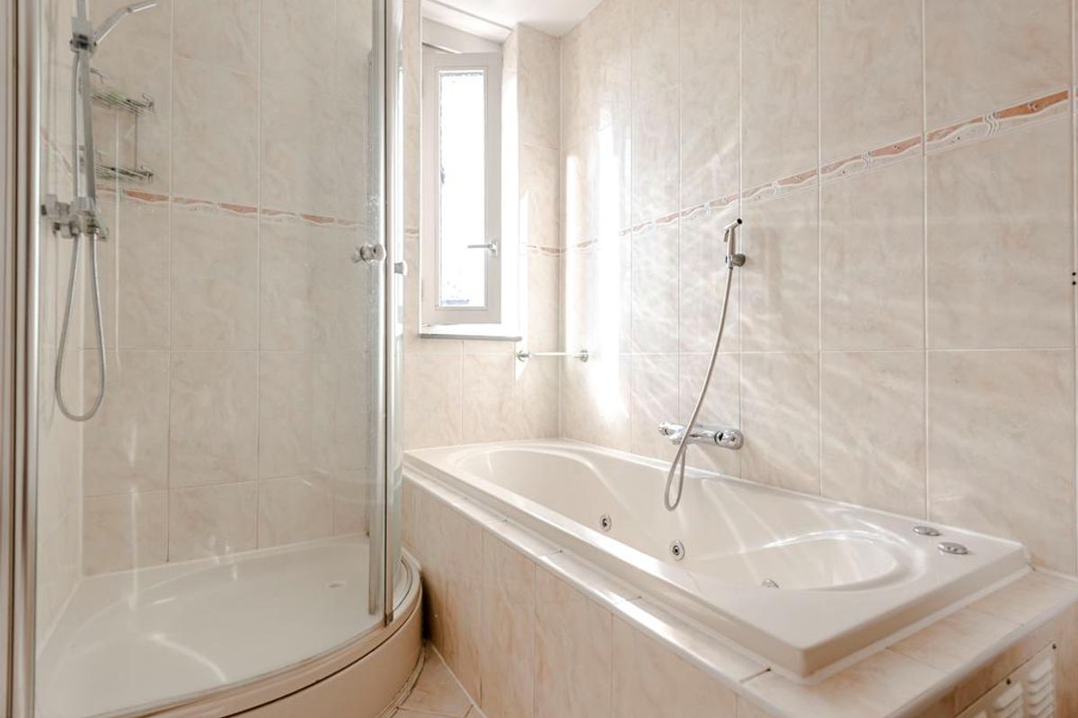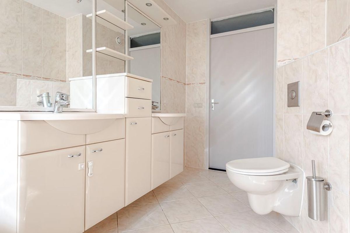 Via de open trap heb je toegang tot twee slaapkamers, de badkamer met en toilet. De moderne badkamer heeft een jacuzzi, douchecabine, twee wastafelmeubel en een toilet.