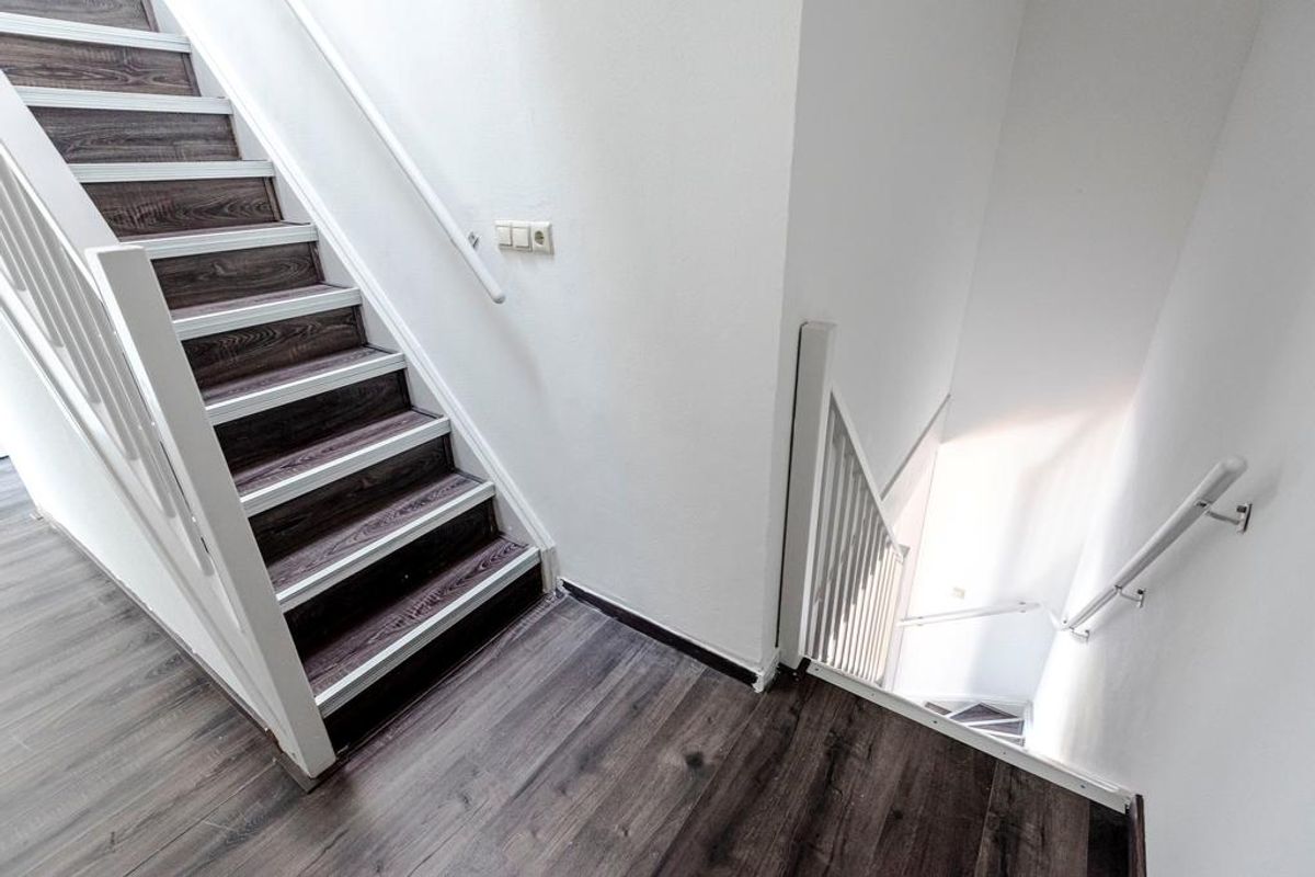 Via de open trap heb je toegang tot de 3e en 4e slaapkamers en een waskamer.