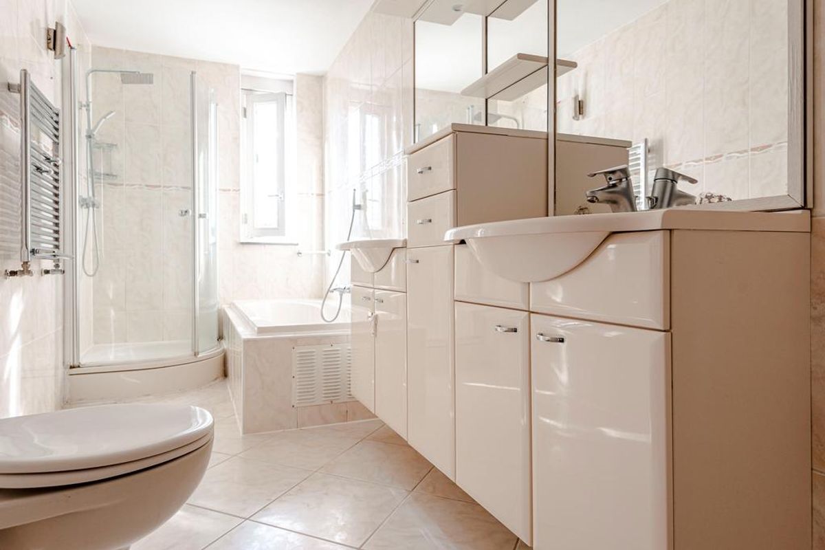 • Badkamer: 1 Moderne badkamer met jacuzzi, 2 wastafelmeubel en een ligbad