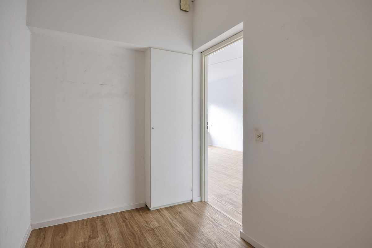 Je komt het complex binnen via een moderne entree met video-intercom en een receptie. Vervolgens neem je de lift (of trap) naar de zesde verdieping. Hier stap je het appartement binnen en kom je in de ruime hal die toegang geeft tot de woonkamer, het toilet en de meterkast.