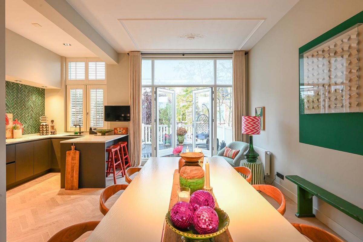 Een heerlijke eetkamer met luxe open keuken waardoor een fijne verbinding om gezellig gerechten te bereiden en in contact met de gasten te kunnen zijn.