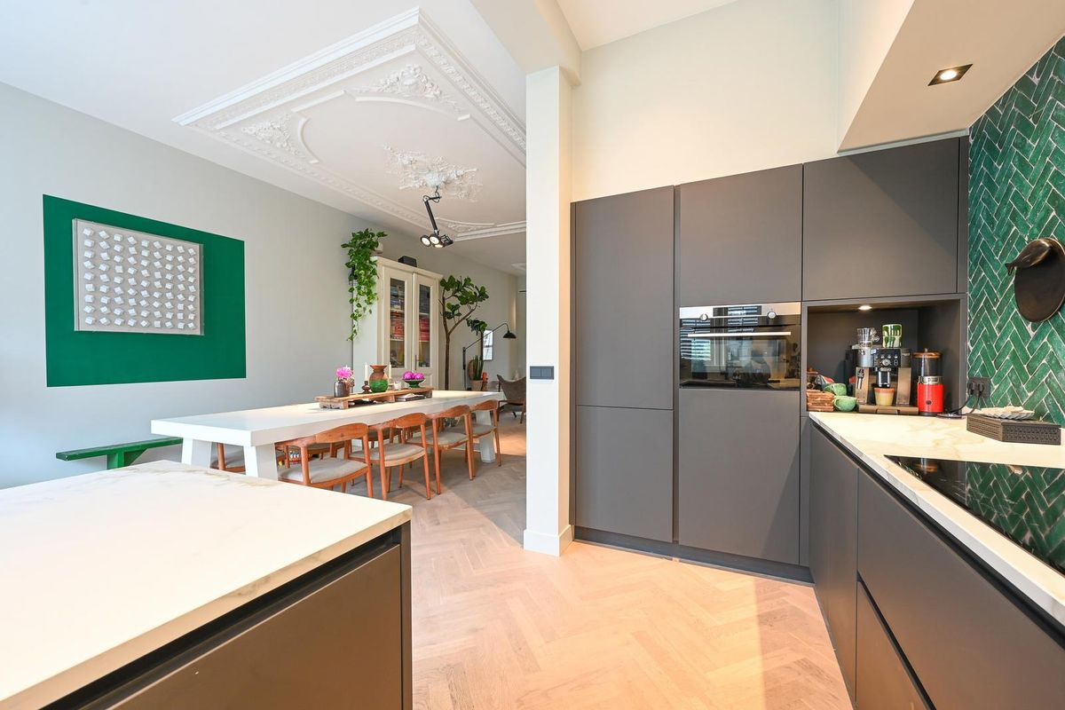 PAREL aan de Laan van Meerdervoort waarbij de uniekheid van dit appartement direct opvalt door de zeer hoge afwerking met een sfeervolle en royale woonkamer met ca. 3,20m hoog plafond met fraaie detaillering, gashaard, moderne keuken in U-opstelling en niet te vergeten het enorme aangrenzende terras van ca. 21m2 op het Zuidoosten waardoor veel zonuren. Verder twee luxe badkamers, 3 slaapkamers, werkkamer, prettig 2e terras op het Zuidoosten en een balkon aan de voorzijde.