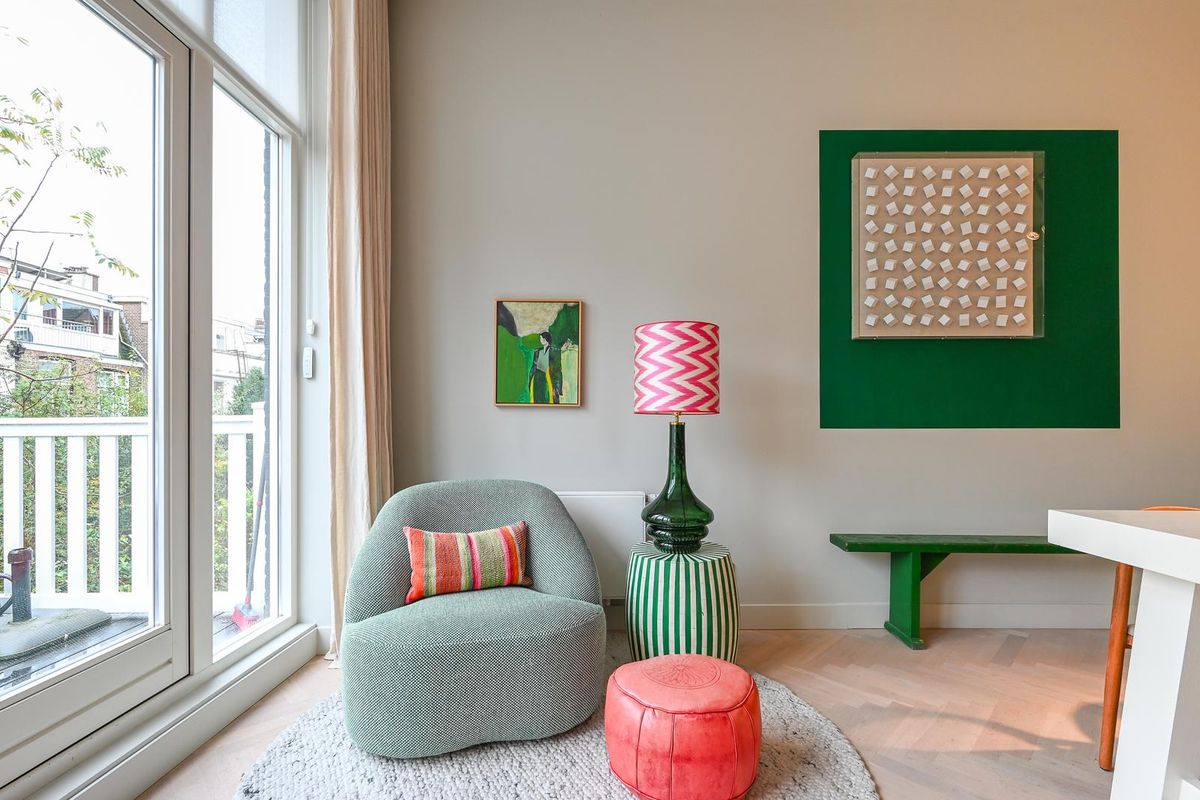 2e verdieping: Opmerkelijk prettig lichtinval op de overloop door de lichtstraat met glas-in-looddetails. Modern toilet met een hangcloset, inbouwreservoir en een fonteintje. Slaapkamer aan de voorzijde met een dakraam die nu in gebruik is als walk-in closet maar ook als slaapkamer dienst kan doen. Charmante slaapkamer aan de voorzijde van het appartement met openslaande deuren naar een beknopt balkon.