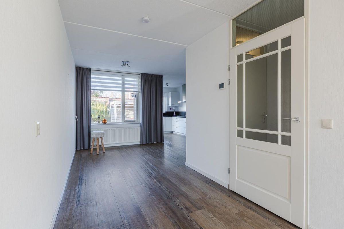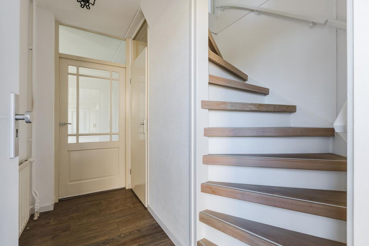 In de hal met pvc vloer vindt u de meterkast, trapkast en trap naar de 1e verdieping.