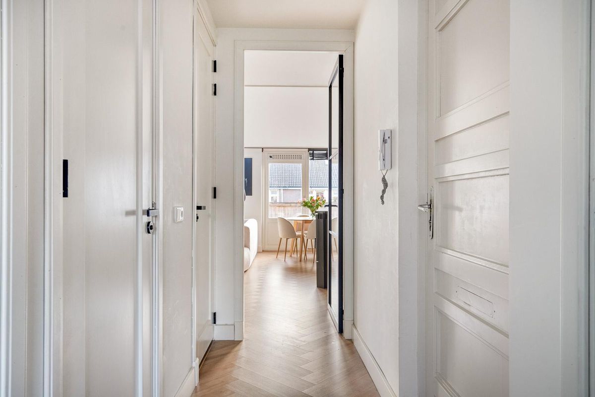 Via de gemeenschappelijke entree met bellentableau en brievenbussen kom je binnen in de nette hal van het gebouw, waar je ook toegang hebt tot je eigen berging. Met de trap bereik je de eerste verdieping, waar dit fijne appartement zich bevindt.